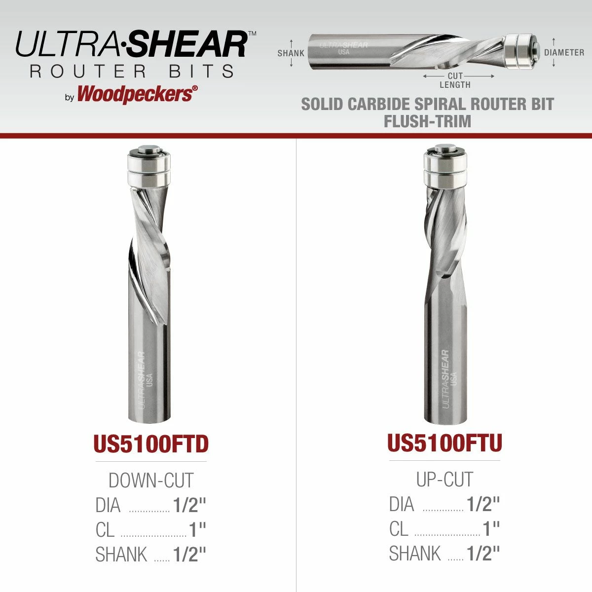 Like all Woodpeckers products, Ultra-Shear Solid Carbide Flush Trim Bits are made right here in our Strongsville, Ohio, facility just south of Cleveland.