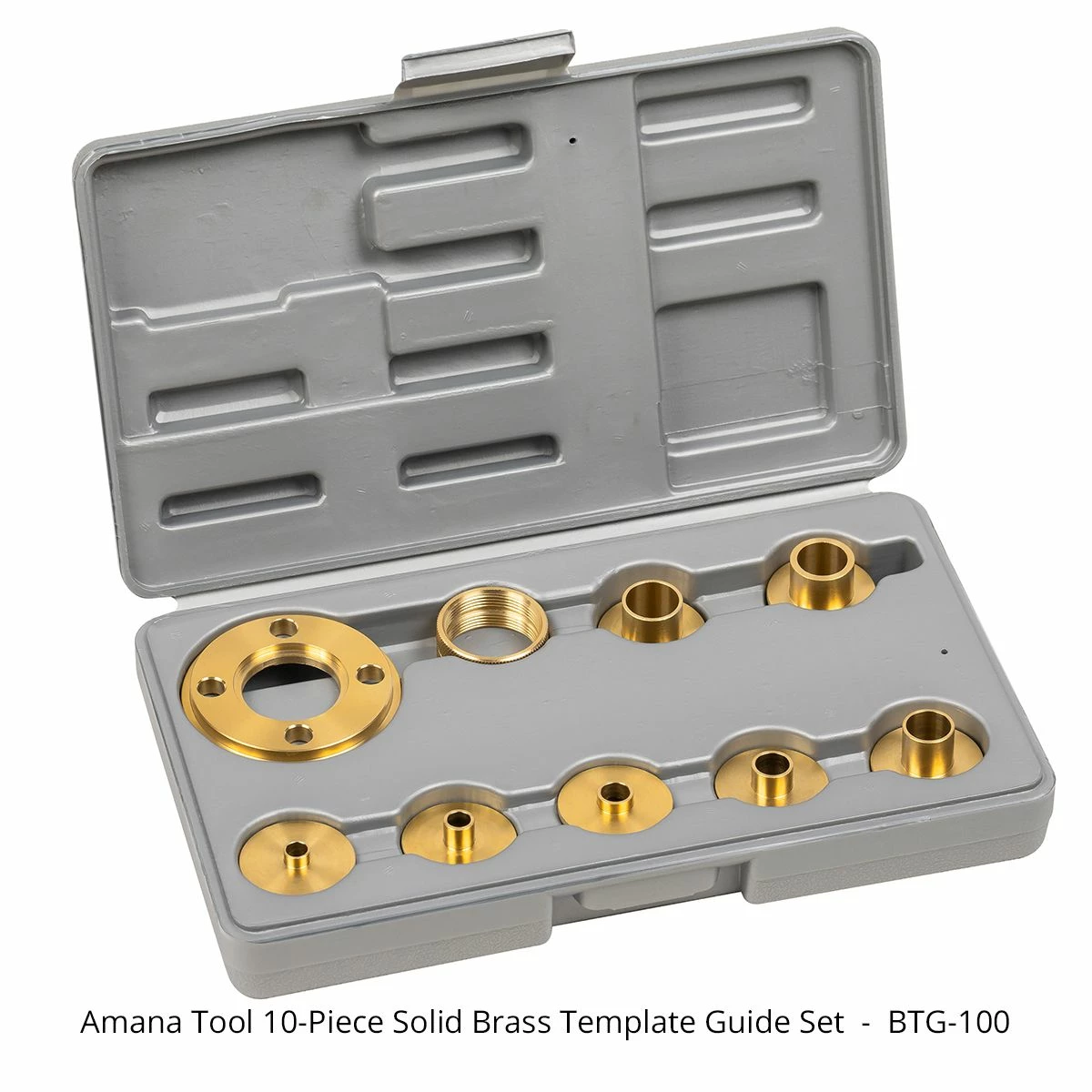 Expand the capability of your router with this 10-piece brass bushing set. Use your router as a precision cutting machine for duplicating patterns, cutting signs, creating dovetails, or any other project requiring template work. Unlike bearing tipped bits, which can fail, this heavy duty, precision machined, brass bushing set provides worry free routing.