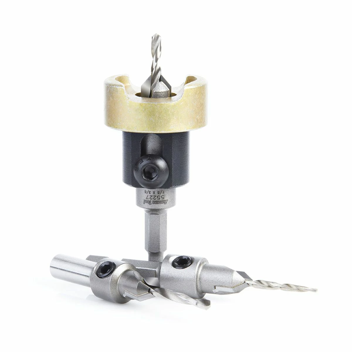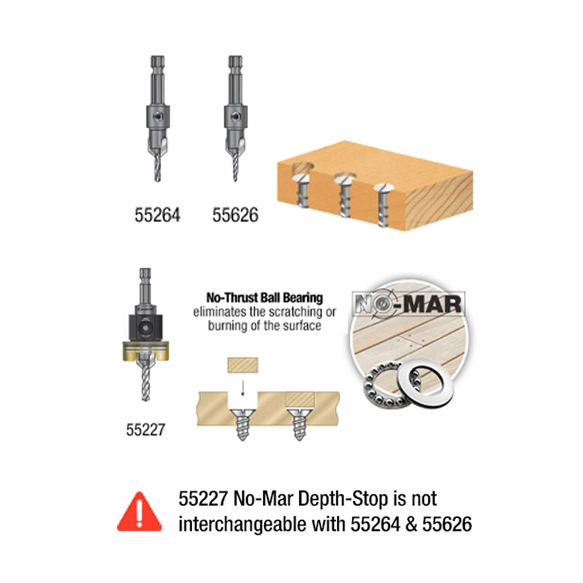 Used to countersink holes for the heads of screws in woods, plastic and non-ferrous materials, the 2-flute integral design ensures uniform and concentric results each and every time. Carbide tips provide chip free hole edges and lasts much longer than steel countersinks. The no-thrust ball bearing eliminates the scratching or burning of the surface.