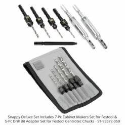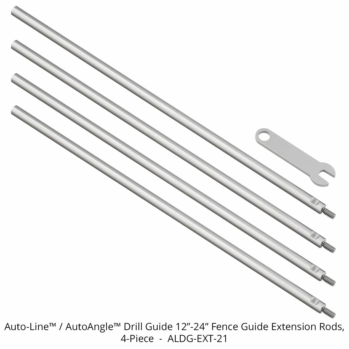 The Basic AutoAngle includes the fence, a pair of 6-1/2″ guide rods and a short multi-knob for close quarters work. The Deluxe AutoAngle adds six 11″ guide rods and two flip stops.