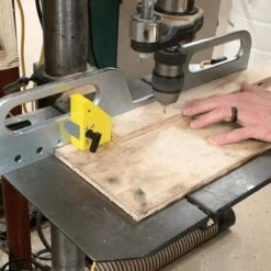Drill guide is sized for drill bit sizes: 1/8 to 3/8″. 17 drill sizes – 1/64″ increments. 17 drill sizes include: 1/8, 9/64, 5/32, 11/64, 3/16, 13/64, 7/32, 15/64 1/4, 17/64, 9/32, 19/64, 5/16, 21/64, 11/32, 23/64, 3/8″.