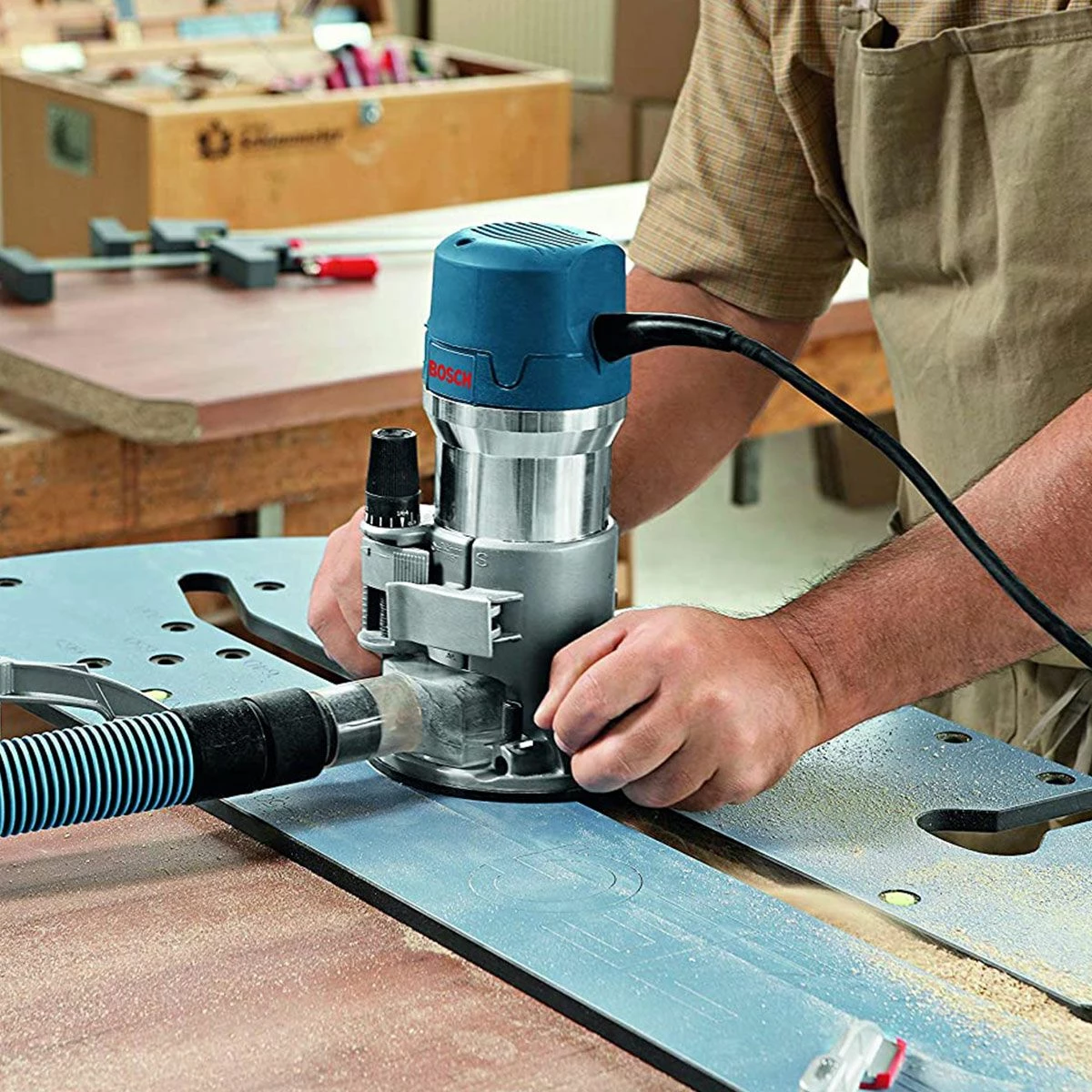 The Bosch 1617EVS Router delivers the horsepower to finish the most difficult jobs. It features a 2.25 (max) horsepower rating and linear depth adjustment. The motor delivers heavy-duty power for cutting through hardwoods and other materials.