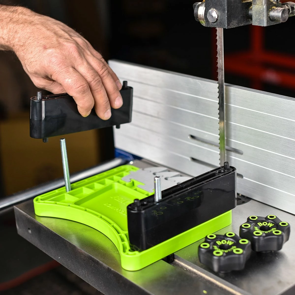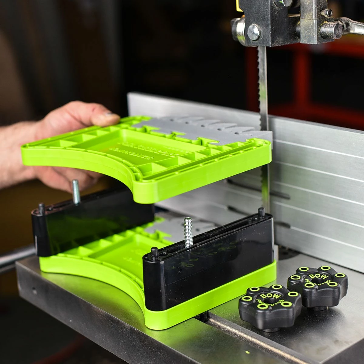 Bow Products’ FeatherDUO Stackable Featherboard features EVA feathers with all the breakthrough benefits as our FeatherPRO but in a raised platform. FeatherDUO Featherboard features UltraFLEX feathers for greater sensitivity feedback when applying pressure. Bow’s EVA Feathers are made from a unique blend ideal for woodworking and are water jet cut for precision. Feathers are Replaceable, reversible, and interchangeable. FeatherDUO offers two stacking options: Use risers to attain a stacked height of 3 1/2″, or stack without risers using 2-1/4″ T Bolts for 1-1/2″ height. FeatherDUO contains all the hardware to be used as two individual featherboards. FeatherDUO features our patented AnchorPRO miter hardware that offers fast expansion set up and super strong hold in the miter slot. Also mounts to T Track. Comes with Comfortable Ergonomic Knobs. If you want the ultimate in safety, performance, and tool protection, get FeatherDUO. For use on band saws, table saws, routers, and other cutting machines.