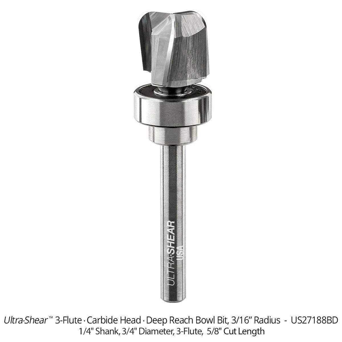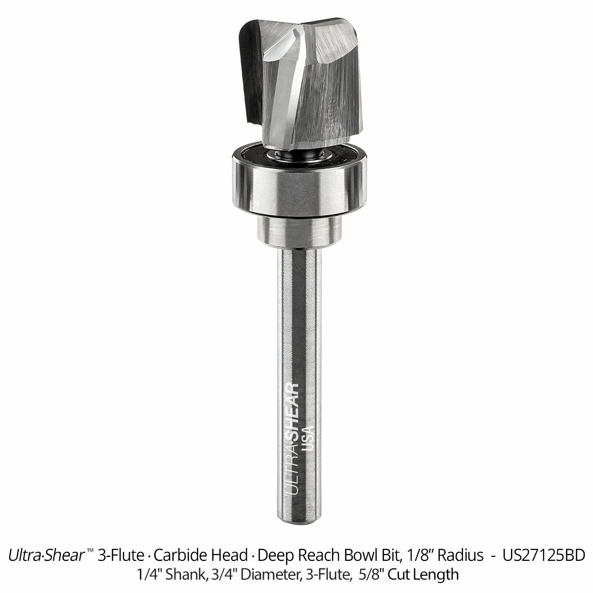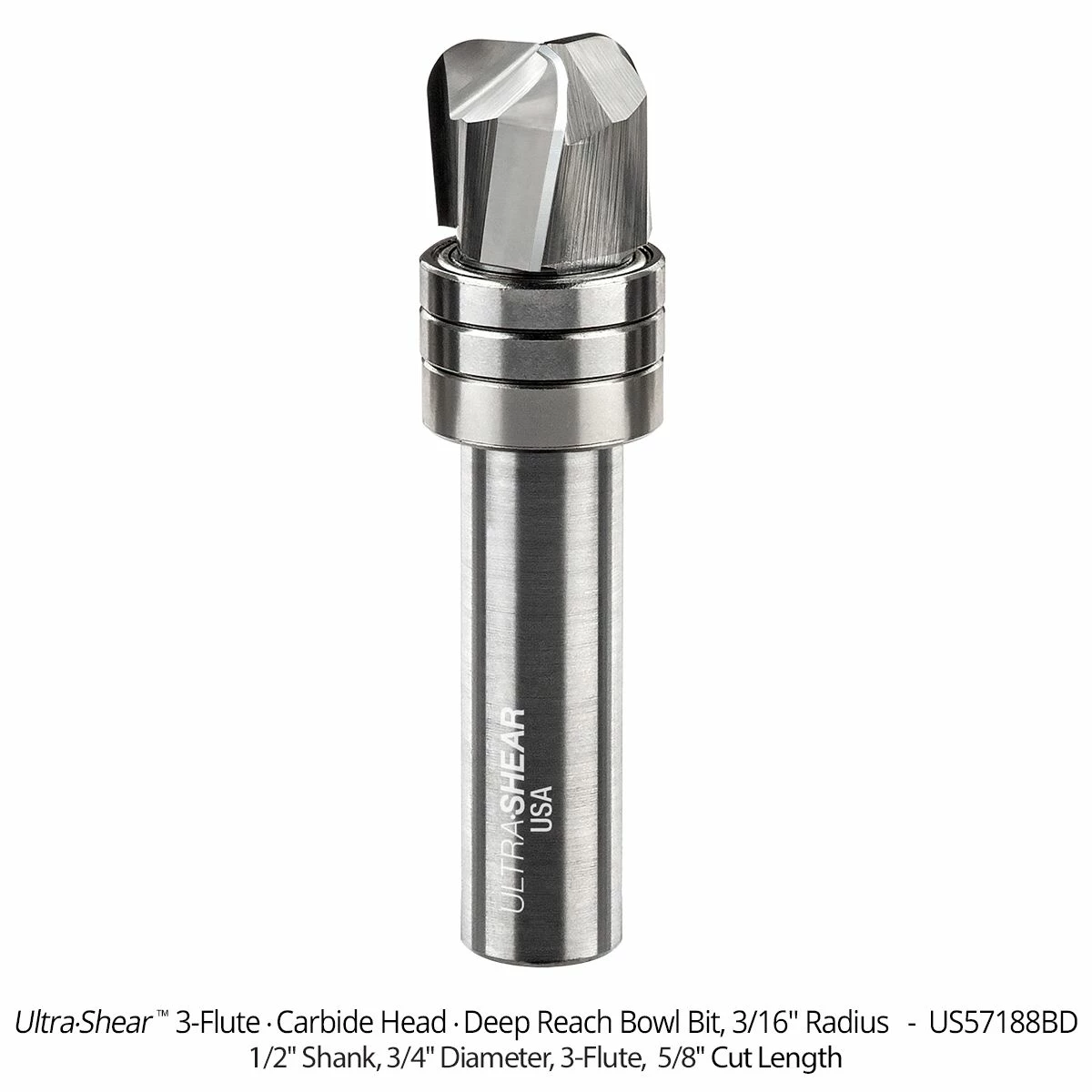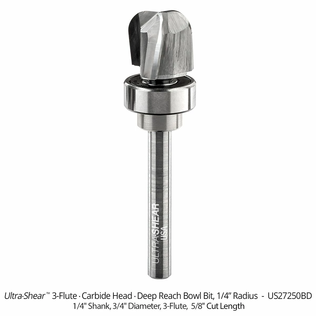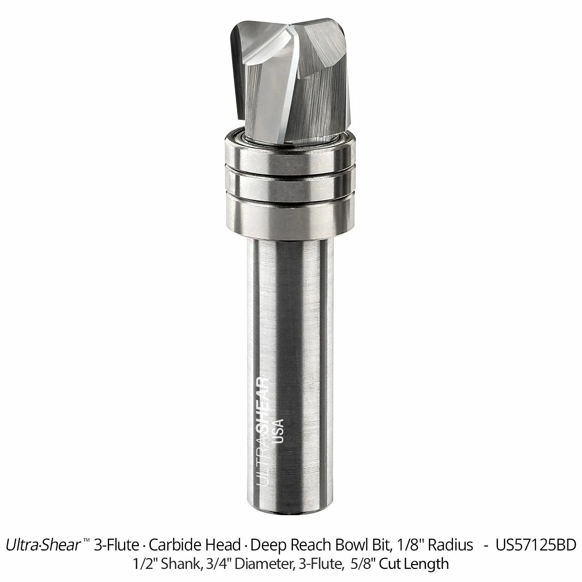 These bits were actually developed in response to a customer request. It seems most of the bowl bits on the market are too short for most home shop CNC machines to be able to cut a reasonably deep recess. So, we gave these extra shank length and made them in both 1/2″ and 1/4″ shank so everyone with any router can get in the game.