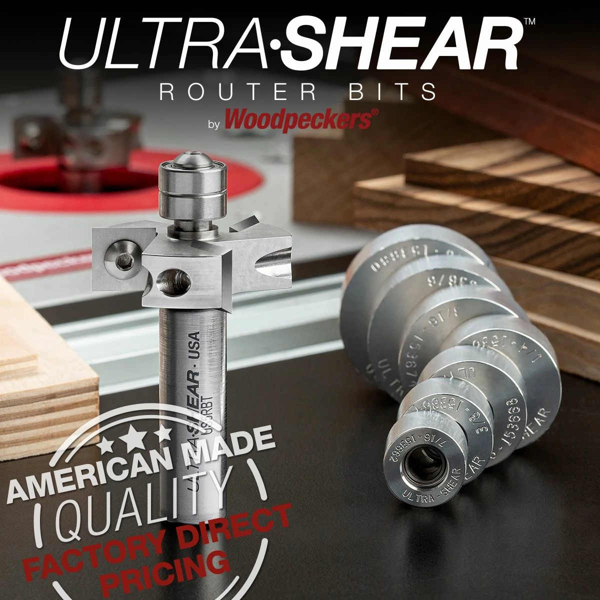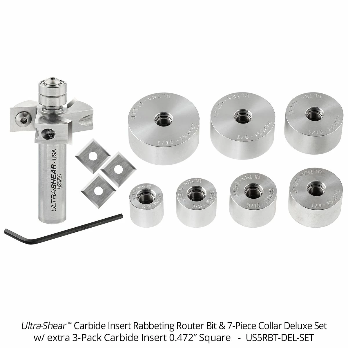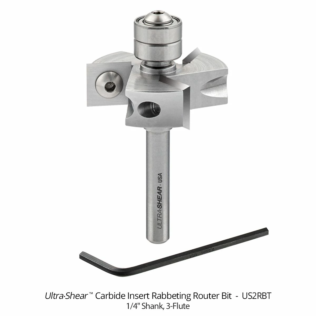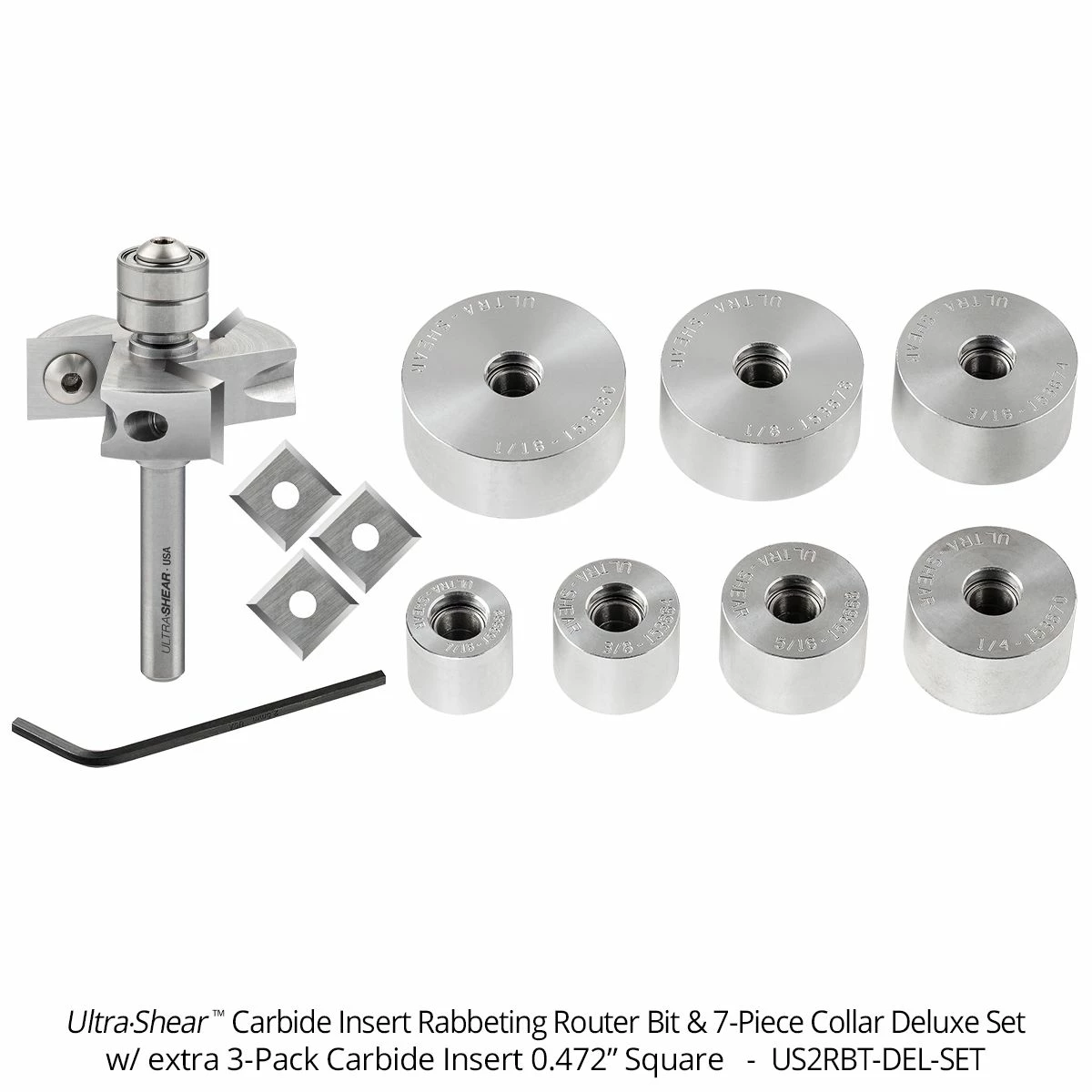 Woodpeckers ships these top-quality bits direct from the manufacturer to the woodworker. You no longer have to settle for inferior quality imported bits to save money. We precision-machine the body of the Carbide Insert Rabbeting Bits here in our Strongsville, Ohio, facility. Our factory-direct approach delivers top quality router bits at extremely competitive prices. These are the only carbide insert rabbeting bits we know of that offers 3 cutters instead of 2, are available in both 1/4″ and 1/2″ shank and have an optional set of depth collars in 1/16″ increments.