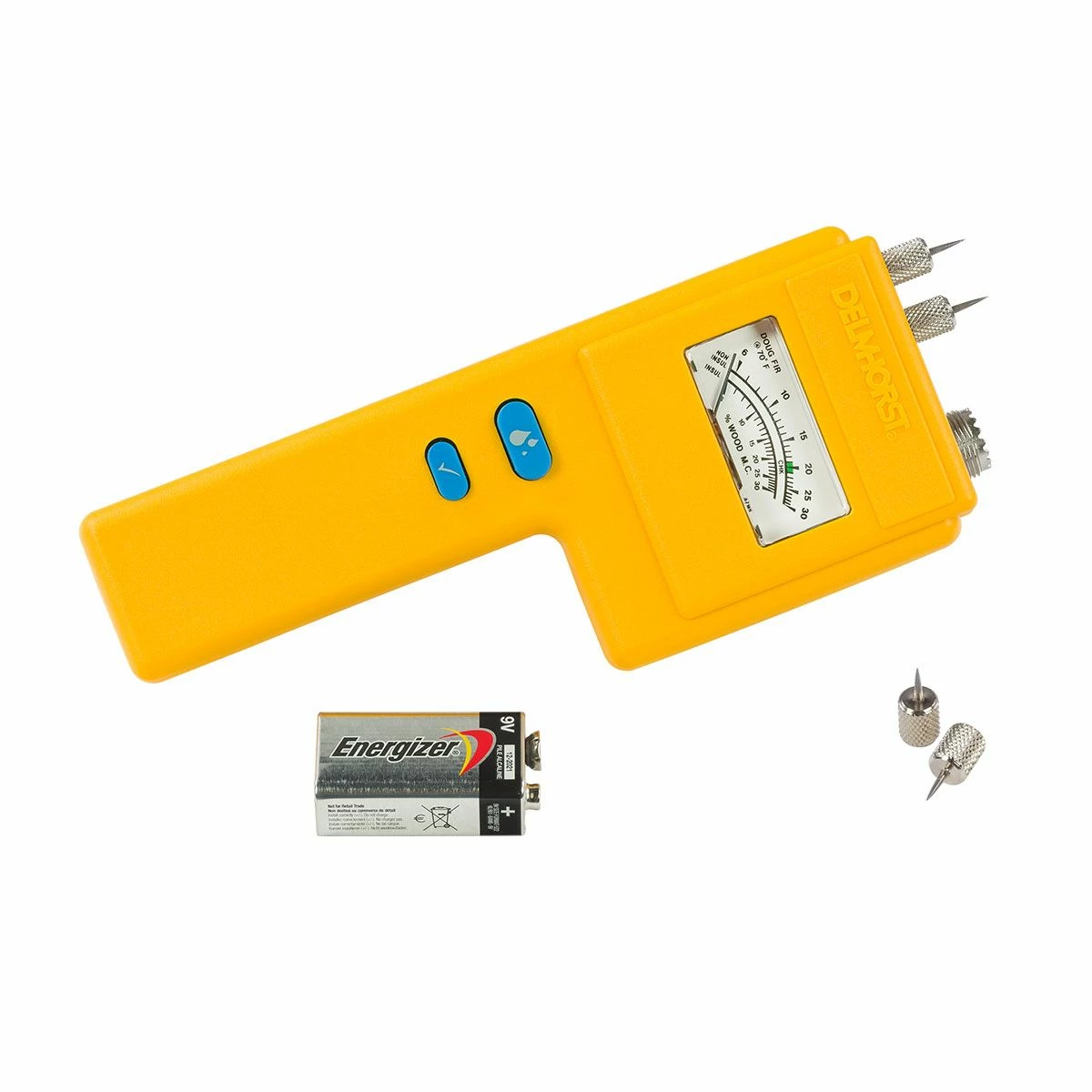 496 contact pins are insulated except at the tips, and measure 2″ overall with 1-1/8″ penetration. Standard on the 26-ES, and can be used to check wood up to 5″ thick.