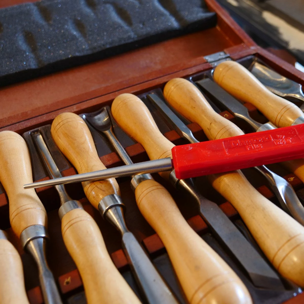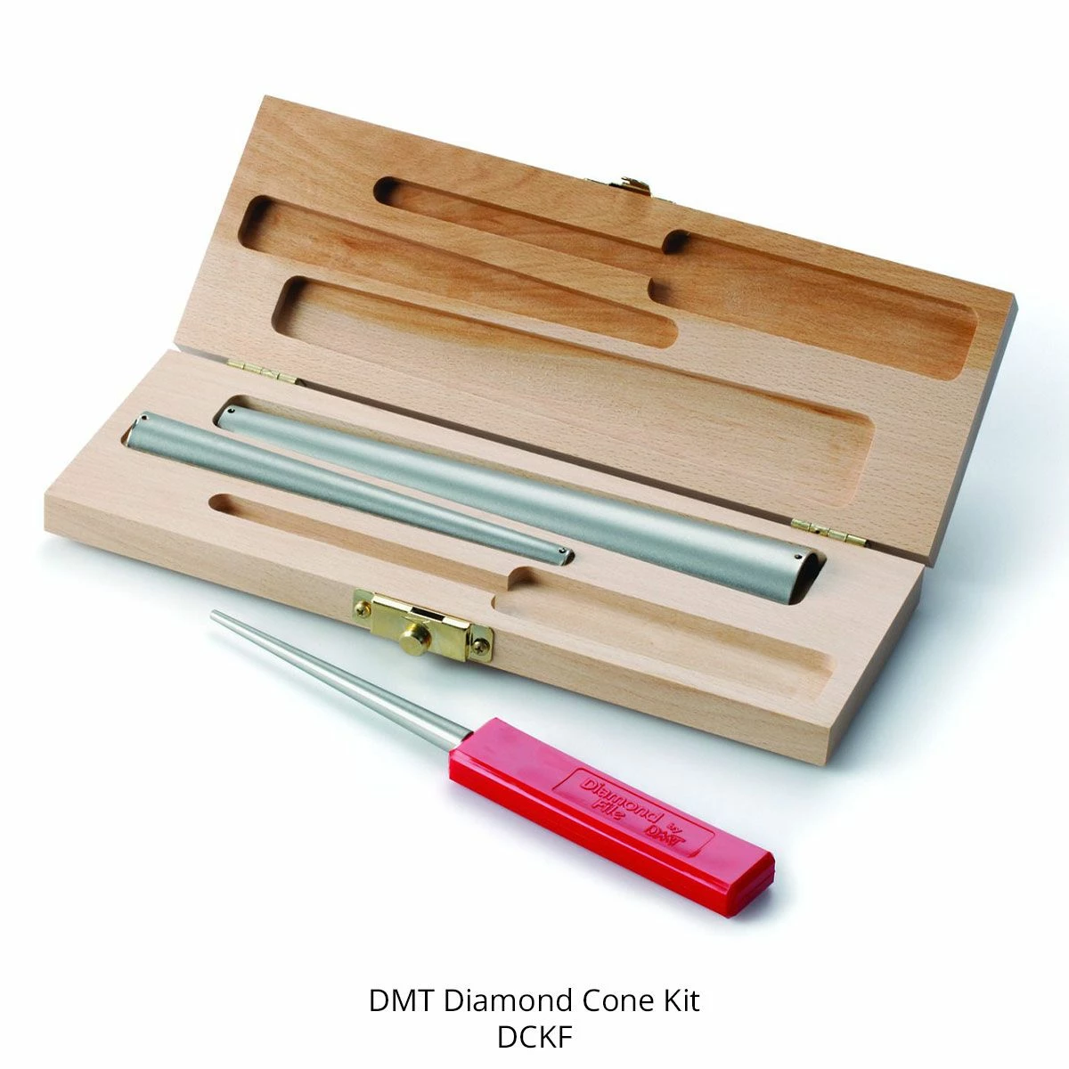 For special projects, use specialized DMT® Diamond Honing Cones. The tapered diamond slip stones included in the kit are excellent for working gouges, wood turning, tool & die work, dental tools and more. With this particular set equipped with fine diamond (25 micron / 600 mesh), you can hone a razor-sharp edge on any tool with speed and precision. Sized with a large 3/4″ to 1 1/4″ diameter x 8″ half-round cone, DMT’s signature quality and versatility are represented in full with these Diamond Honing Cones. Thanks to its micronized monocrystalline diamond surface as well, you can sharpen edges faster and easier than conventional methods can. No messy oils are needed either, allowing you to sharpen dry or with water. Complete with a durable construction that will provide years of consistent performance and reliable service, professionals rely on the superior quality and versatility of DMT® products for proper tool maintenance. Made in the USA.