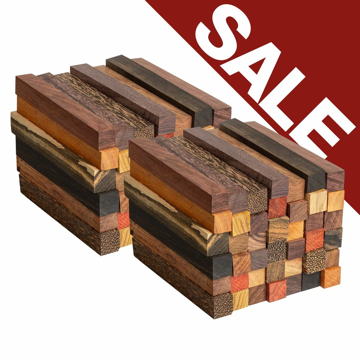 Pen turners are notorious for wanting to try new and exotic woods for their pens, pencils and other small project kits. The challenge has been assessability to a wide assortment and the cost. We have solved this problem by going direct to the mill and snagging a wide selection that will satisfy everyones taste. These exotic pen blanks sets are nothing short of amazing in the quality and assortment of blanks. A minimum of at least eight different species. Your assortment is guaranteed to include a generous quantity of cocobolo along with other species such as redheart, katalox, granadillo, chechen, chakte viga, canarywood, bocote and black palm. Blanks are ¾” x ¾”. We have created a mix with 80 pieces.