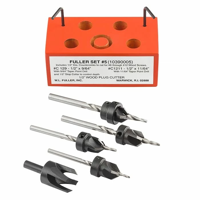 W.L. Fuller produces a wide variety of countersinks and plug cutters, but we have found that these two sets cover most any project in the woodshop. Replacement bits are available.