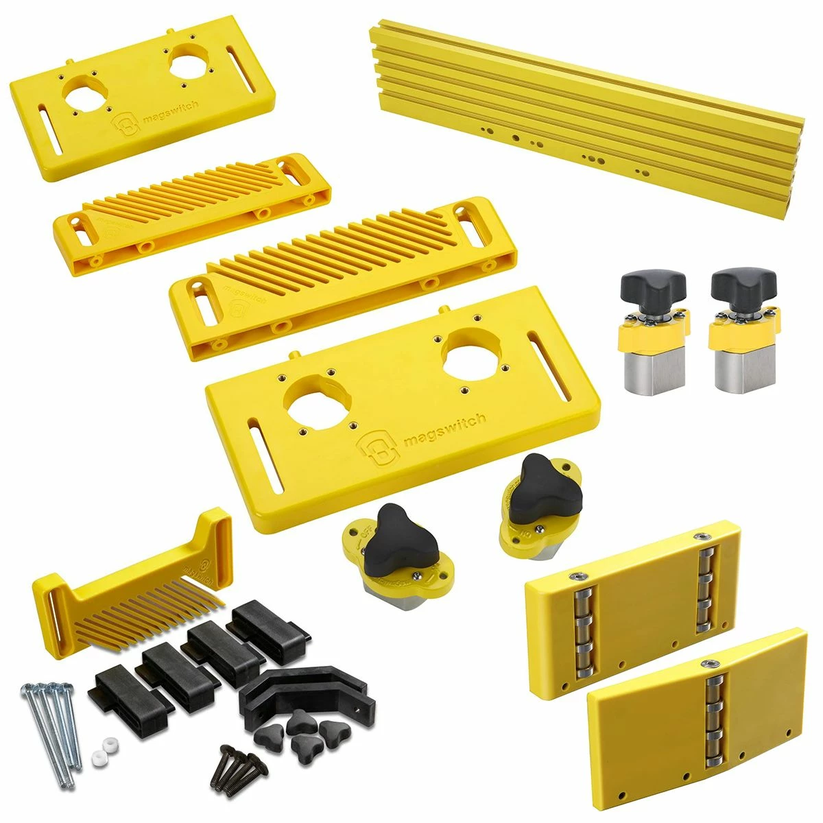 Your entryway into the Magswitch Workholding System, the Starter Kit includes the Universal Base, the Reversible Featherboard Attachment, and (2) MagJig 150s.