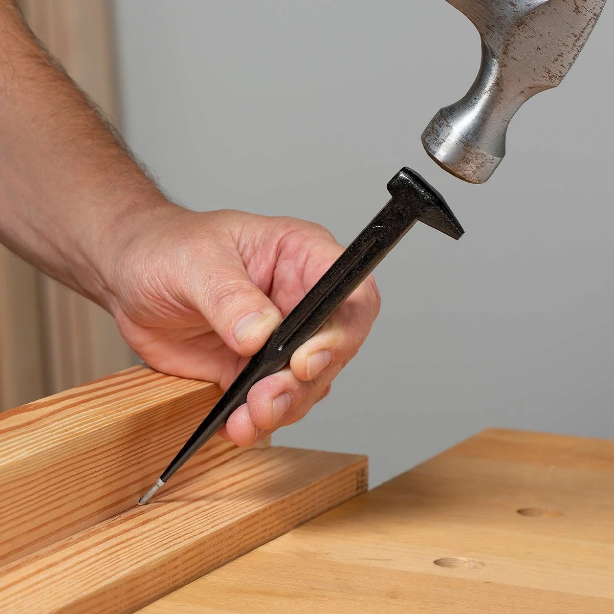 How did you get along without this little gem for so long? This forged steel nail set allows you to use it as a general-purpose 6″ nail set or as a 1-1/4″ nail set in tight spots. Either way, the long shank gives you excellent control. More than a one trick pony. It can also serve as a punch, a drift pin, a tack hammer, or even a small anvil for straightening nails. 6” in overall length.