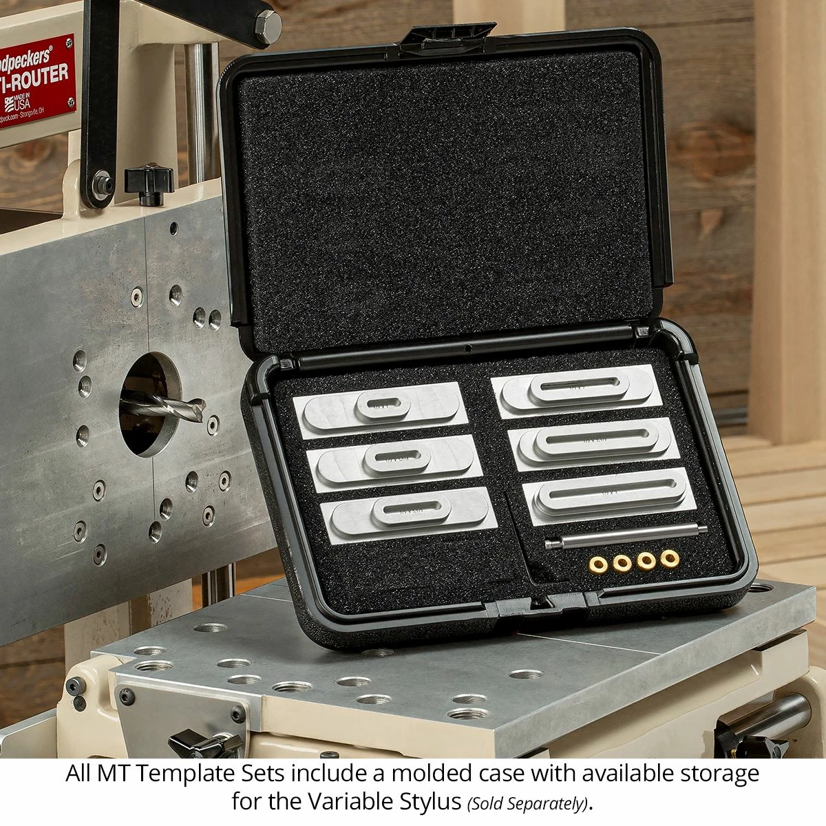 The Variable Stylus unlocks your ability to increase the overall size of your tenon when using the MT Templates on the Multi-Router. It features four interchangeable brass bushings that increase the overall size of the tenon in increments of either .005, .010, .015, or .020 thousandths of an inch. The reduced end of the Variable Stylus inserts into the slot on the MT Template, allowing you to set up stop collars in seconds to create a perfect mating mortise for your tenon. The Variable Stylus is only compatible with old or new style tenon templates, and is not designed for use with box joint, dovetail, or round tenon templates.