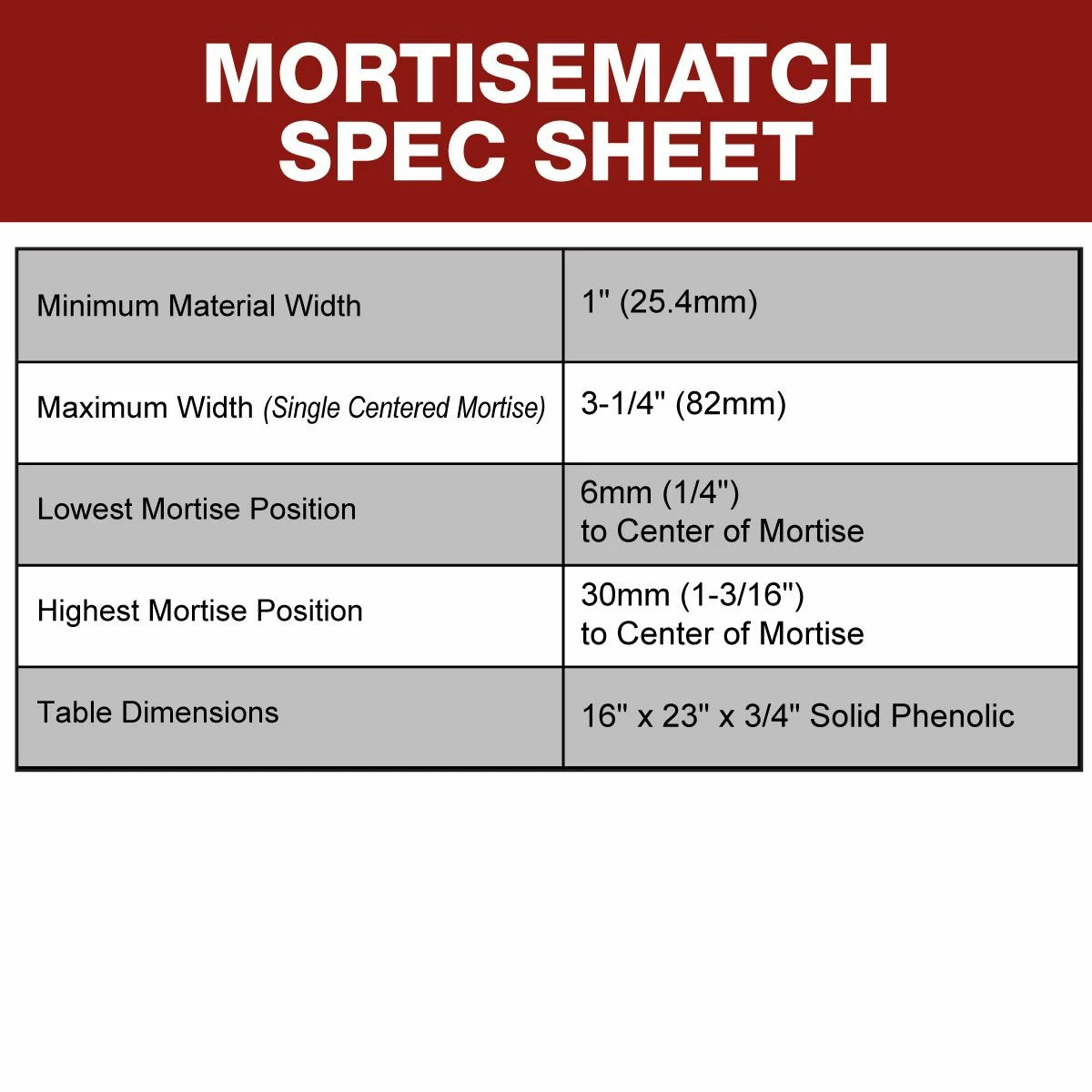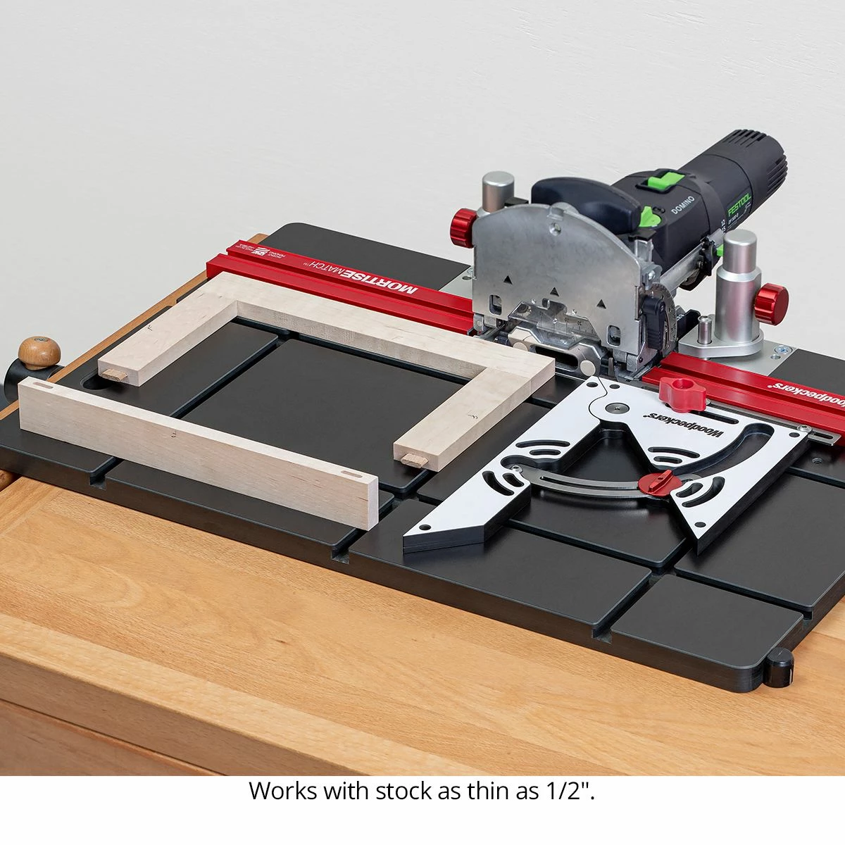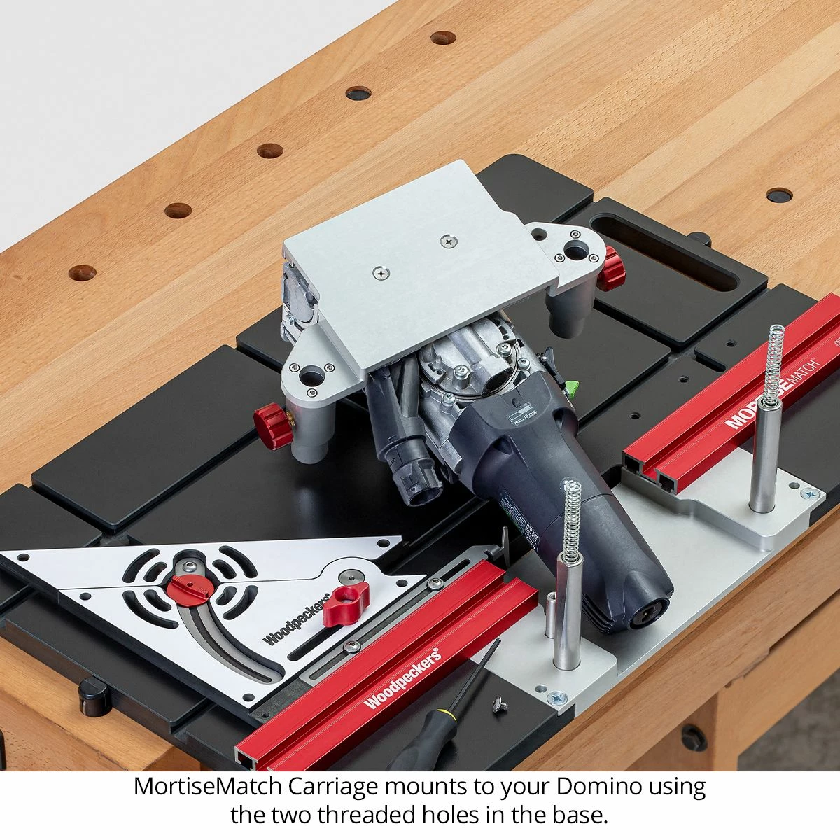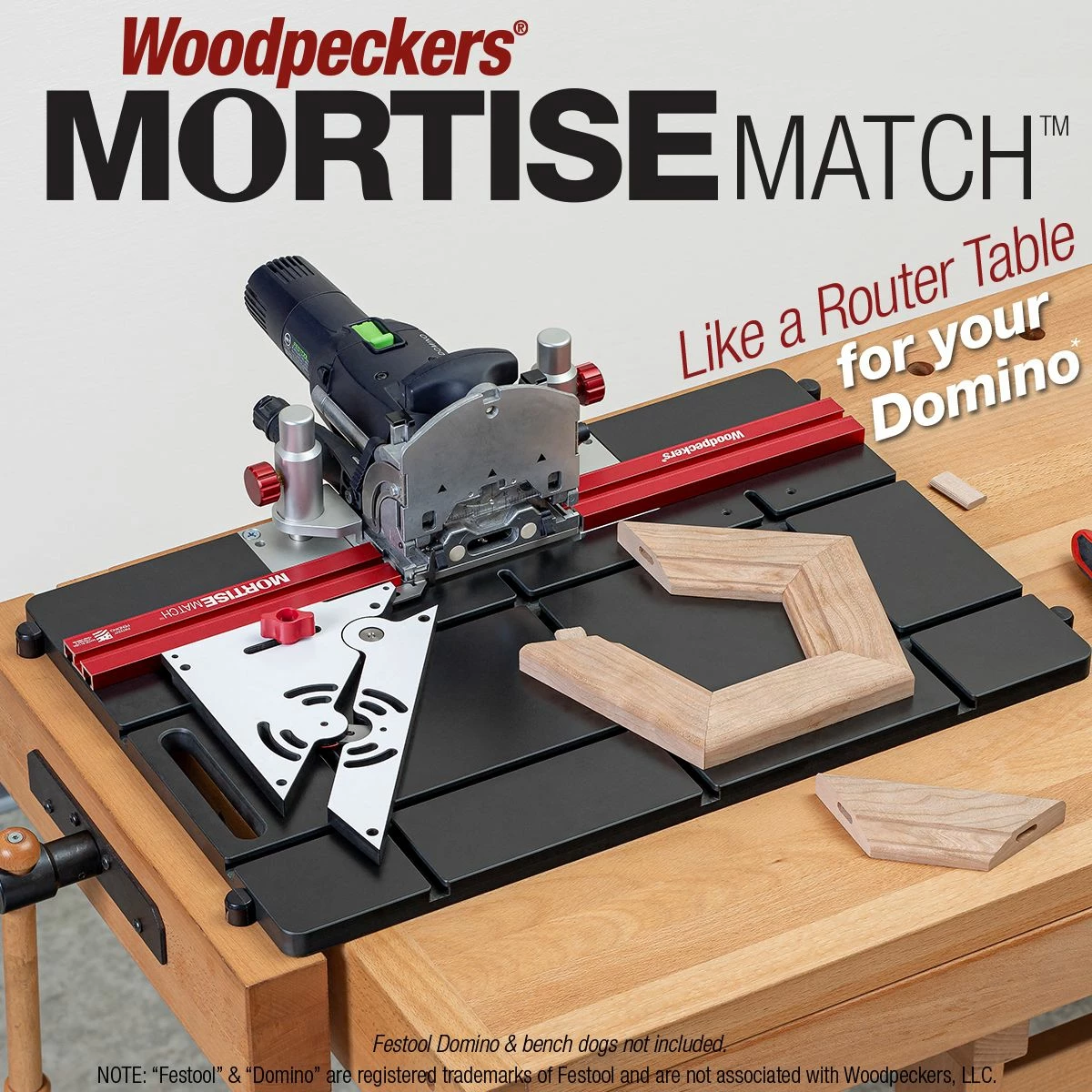 If you’re a Domino user, or have been thinking about becoming a Domino user, MortiseMatch completes the picture; simplifying joint alignment, increasing the range of material thickness, working with narrow material (both square and mitered), and taking the weight of the machine off your hands during long production runs. Like all Woodpeckers tools, MortiseMatch is precisely machined and carefully inspected in our Strongsville, Ohio facility (just south of Cleveland).