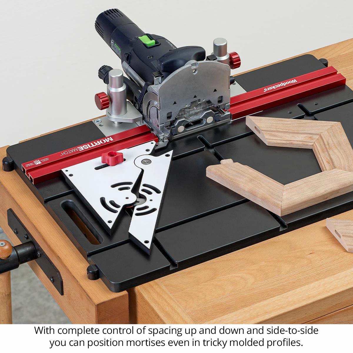 The idea for the MortiseMatch came about when a few of us were trying to use the Domino on some narrow, mitered frames. There just wasn’t enough surface to balance the Domino and the indexing flaps were too far from the mortise position. We found a few table-mounted ideas online, but they didn’t address the issue of material thickness and their indexing techniques left something to be desired. That’s when we decided it was an idea worthy of development.