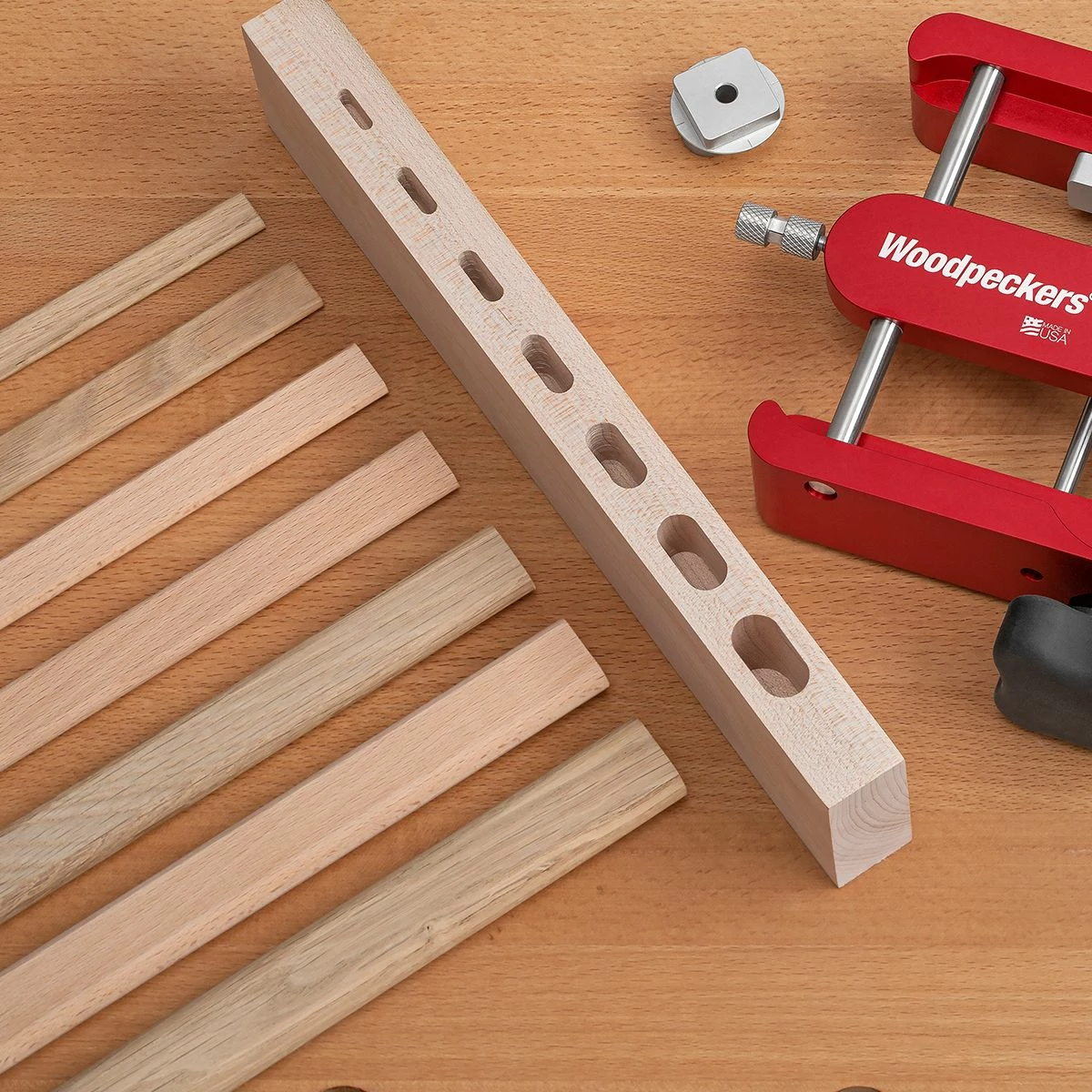 Typical loose tenon joints are quick, strong and convenient. But, the cost of pre-cut tenons can add up quickly and if you want to add the distinctive touch of exposed joinery, they leave ugly gaps around the ends. Whether you have a Festool Domino or Woodpeckers new Morty, you can save money and incorporate through mortises in your designs with Woodpeckers new precision-milled Loose Tenon Stock. Our Tenon Stock is sized and profiled to perfectly fit all the mortises cut by both sizes of the Domino joiners as well as our new Morty Loose Tenon Joinery Jig. The stock is supplied in 31″ sections allowing you to cut them to the exact length you need.