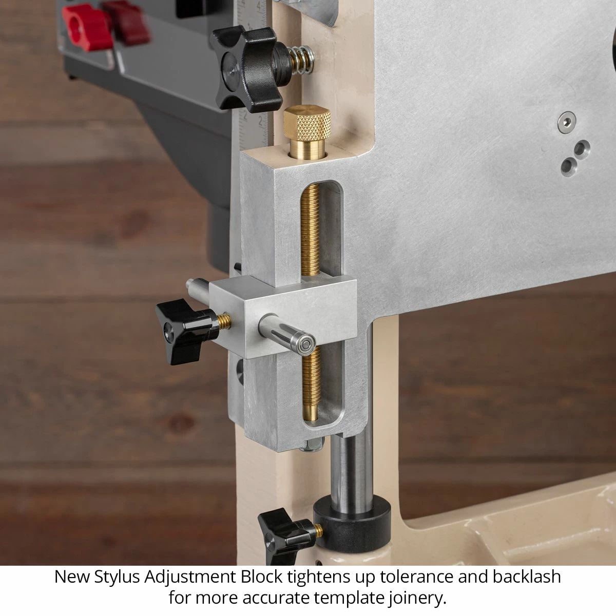 We’ve modified the stylus adjustment block to maintain tighter tolerance, resist racking and minimize backlash when dialing in the relationship between the stylus and the template. You can add this feature to your older Multi-Router and reduce set-up time and improve performance.