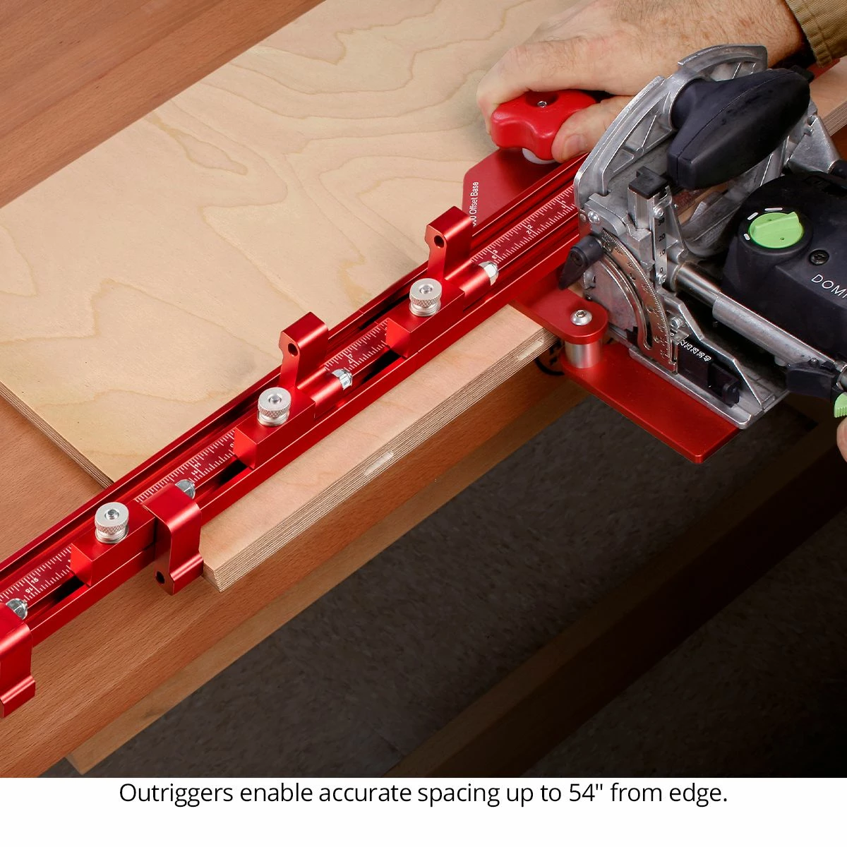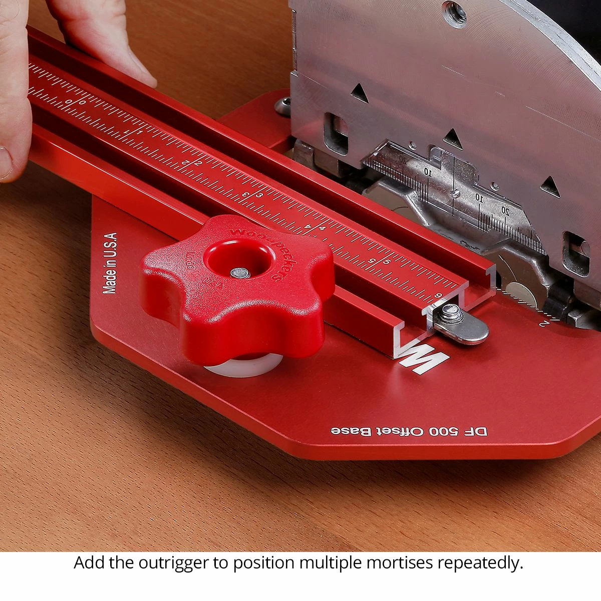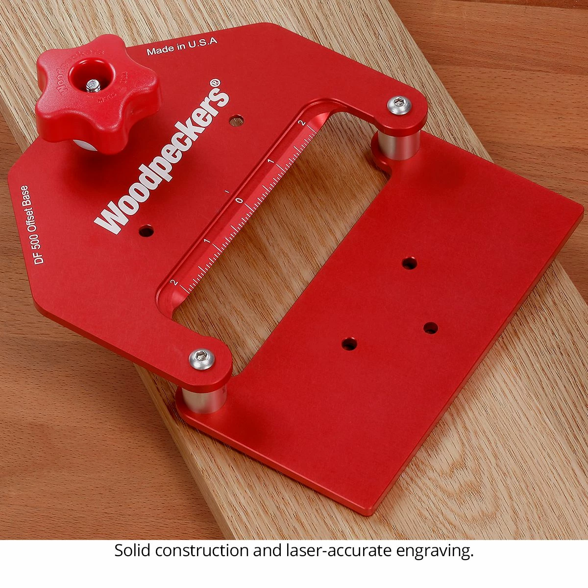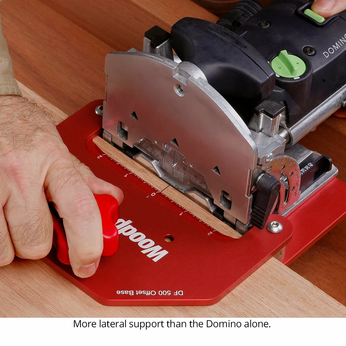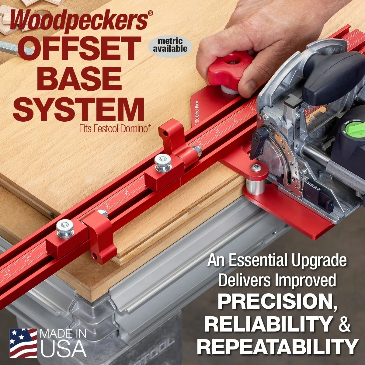 If you’re comfortable with your Domino, you’ll find the Offset Base a natural extension of the system. Other after-market accessory bases make you use the Domino upside down, but Woodpeckers Offset Base works just like normal. There’s even a laser-engraved scale indicating the center of the mortise, just like on your Domino.
