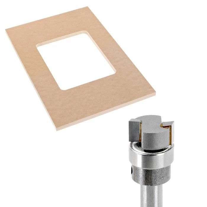 3/4″ MDF Template. Large enough to be clamped to most tables. Makes a perfectly sized opening to fit all Woodpecker Router Mounting Plates and lifts. Works best with 4K41 Template Bit.