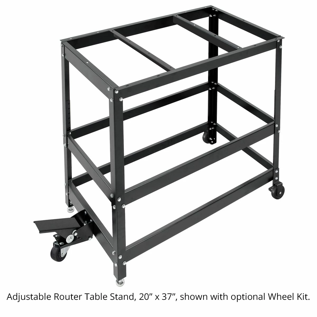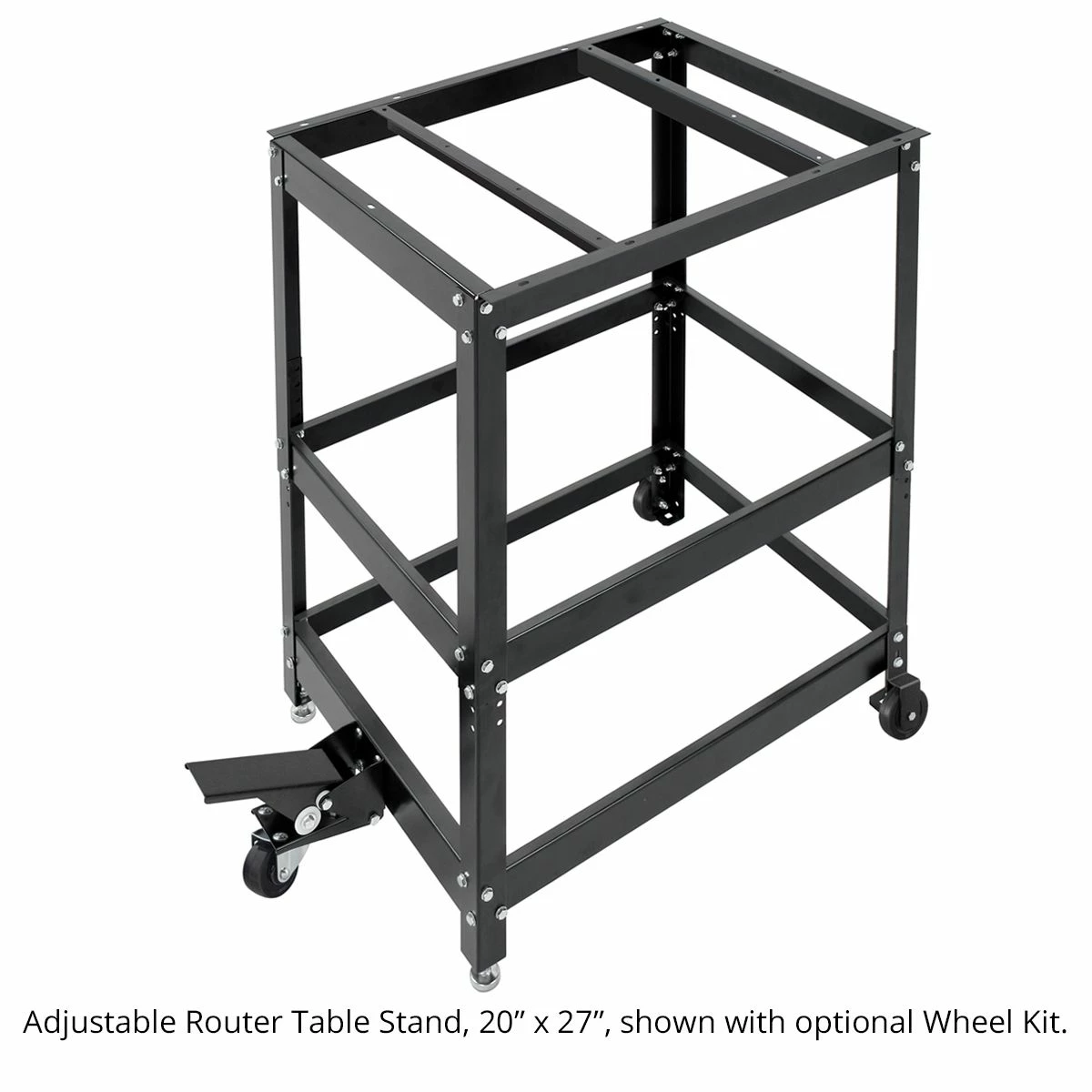 The leg sets are available in a standard 20 x 27 size for most typical router tables and a 20 x 37 size for our (27 x 43) router tables. When choosing a size, keep in mind that your table should be at least 4” larger then the stand in both directions.