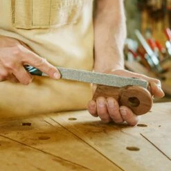 These high-quality double-sided rasps feature coarse teeth on one side (11 tpi) and fine teeth on the reverse (25 tpi). The hardened teeth saw blades held together by rivets, with the teeth oriented to cut on the push stroke. The teeth are designed to help prevent clogging, but they can also be easily cleaned should the need arise. Its ergonomic handle ensures that you’ll always have a comfortable, secure grip. While the tool may seem odd to someone more accustomed to traditional rasps, it works so well that it will soon be one of your favorite tools. Suitable for any shaping task.
