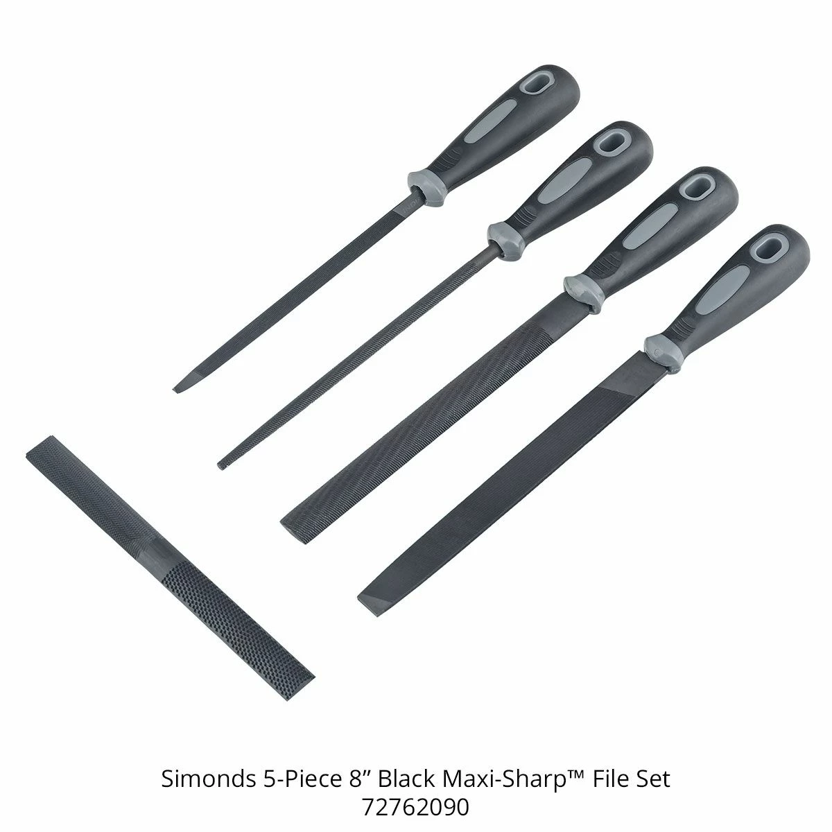 Having a complete set of high-quality hand files in your shop will transform your woodworking processes, and with Simonds’ 5-Piece Maxi-Sharp File Set, you can expect a new level of efficiency and speed in countless tasks. From shaping and sculpting, removing heavy material from your stock, and refining edges and curves to removing tear-out or tool marks and maintaining your tools—the applications are endless. Specially treated with a black oxide coating, the Black Maxi-Sharp files last longer due to increased resistance to loading and rust. Each file has an ergonomic handle for a comfortable, secure grip. The set comes in a protective plastic pouch and includes the following files: (1) 8” Mill Bastard; (1) 8” Half-Round Bastard; (1) 8” Round Bastard; (1) 7” Slim Taper; and (1) 8” Hobby Rasp.