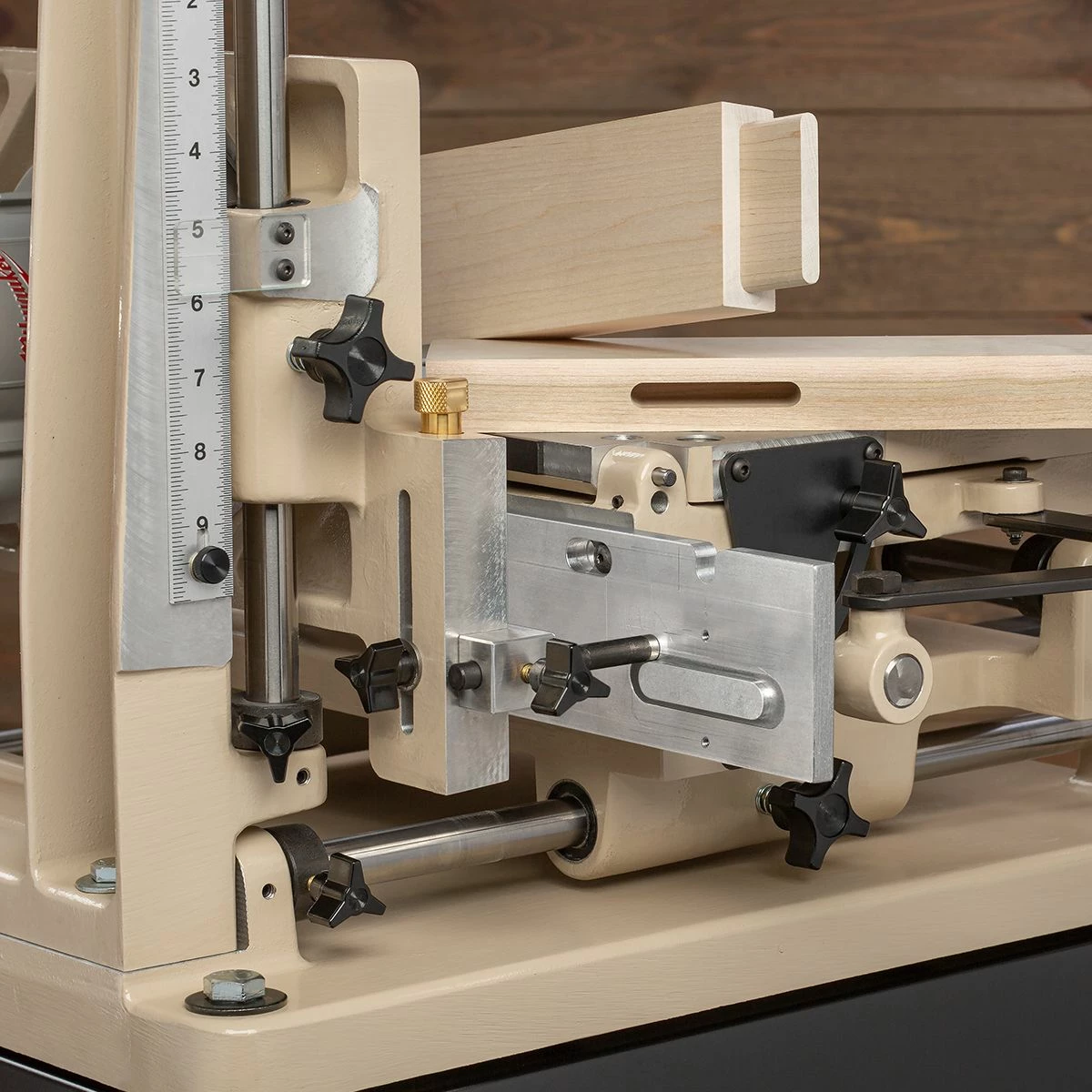 Just lock the Tenon Template you need into the Tenon Template Holder and mount it to the horizontal table of the Multi-Router. Follow the template using a 1/2″ diameter router bit.