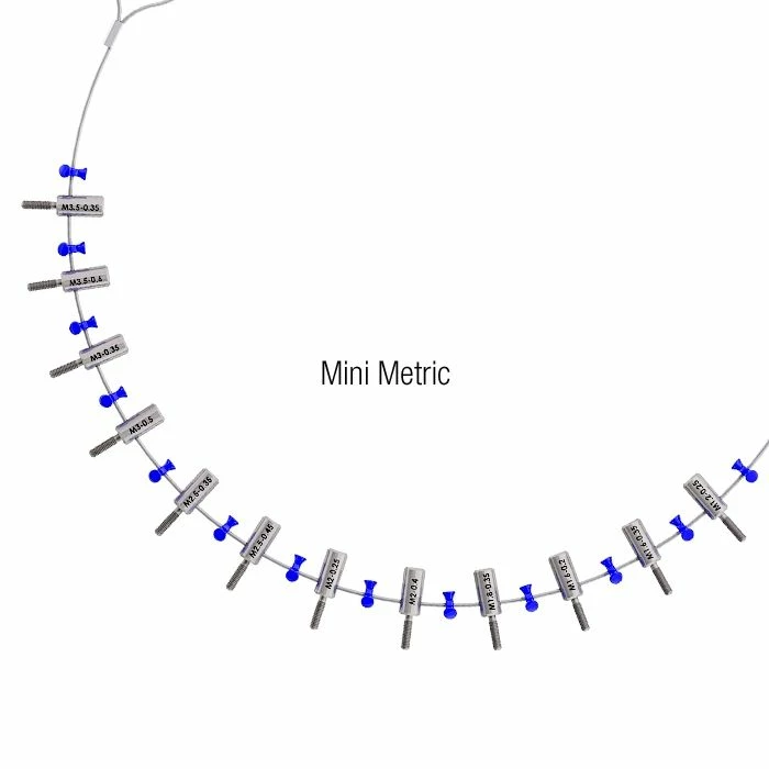 Metric Thread Identifiers contain nut and bolt sizesM1.2×0.25, M1.6×0.35, M1.6×0.20, M1.8×0.35, M2x0.40, M2x0.25, M2.5×0.45, M2.5×0.35, M3x0.35, M3x0.50, M3.5×0.60, M3.5×0.35.