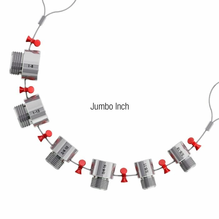 Jumbo Thread Identifier: Inch Thread Identifiers contain nut and bolt sizes of 5/8-11, 5/8-18, ¾-10, ¾-16, 1-8, 1-12.