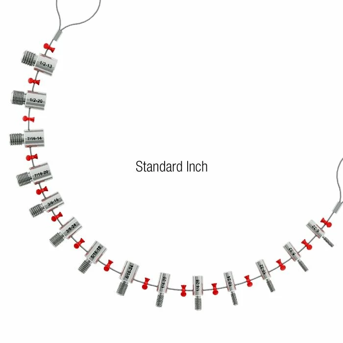Standard Thread Identifier: Inch Thread Identifiers contain nut and bolt sizes of 6-32, 8-32, 10-24, 10-32, 1/4-20, 1/4-28, 5/16-18, 5/16-24, 3/8-16, 3/8-24, 7/16-14, 7/16-20, 1/2-13, 1/2-20.