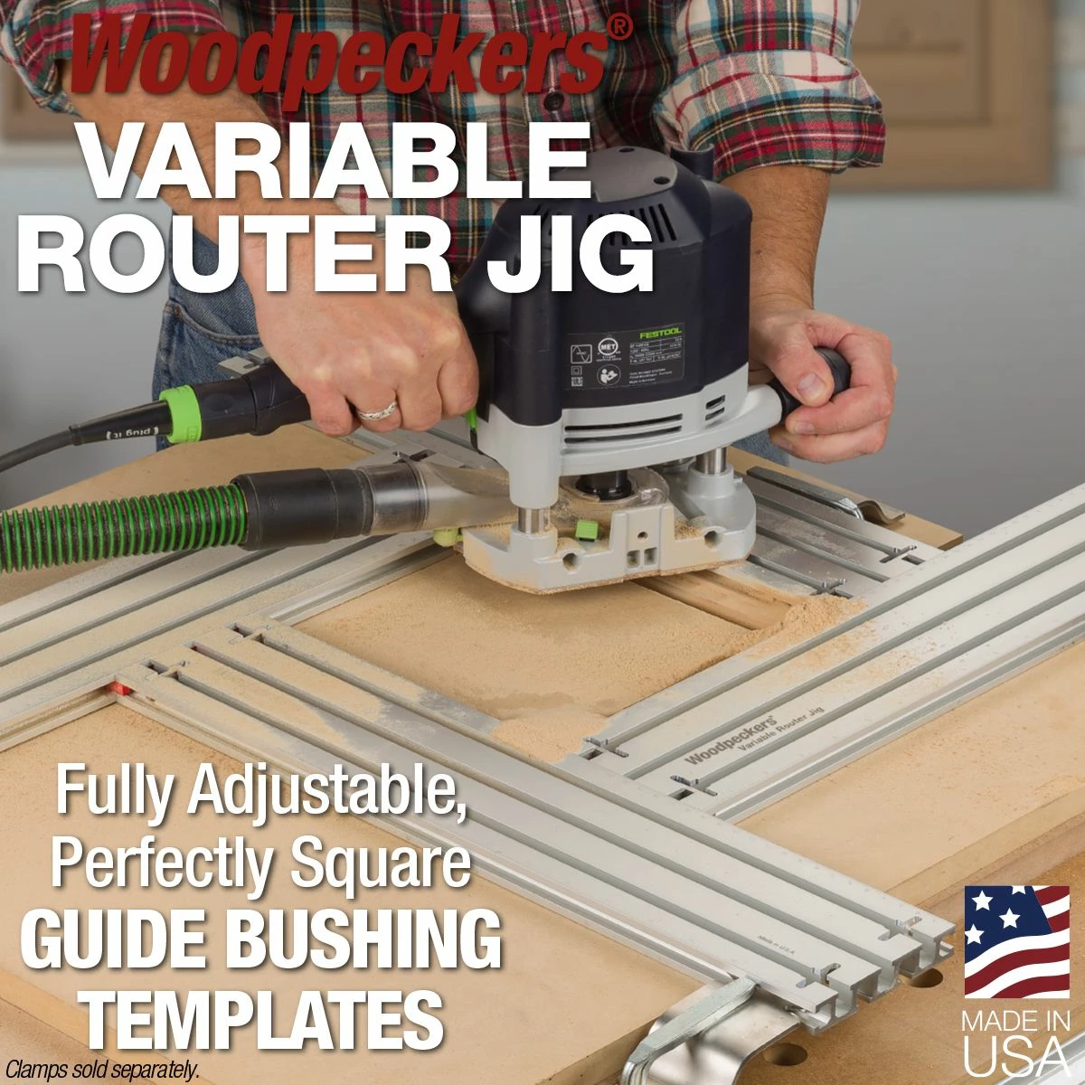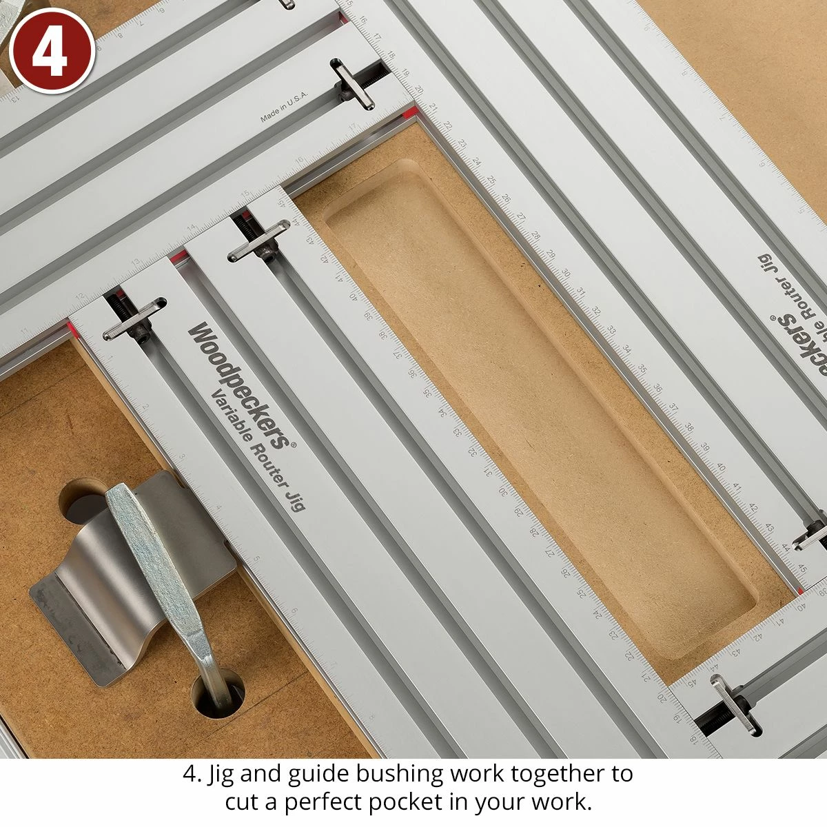 The Variable Router Jig and Router Guide Bushings Are a Perfect Match. You’ll keep this versatile jig right beside your set of router guide bushings, because every guide bushing operation needs a template, and the VRJ configures in minutes to any square or rectangular shape you want. Rout mortises for joinery. Mortise in hardware like hinges and locks. Rout dadoes for inlay work, adding visually stunning details to your projects. Once you see how easy it is to set up and use, you’ll start inventing ways to use it to make your projects go faster and smoother.