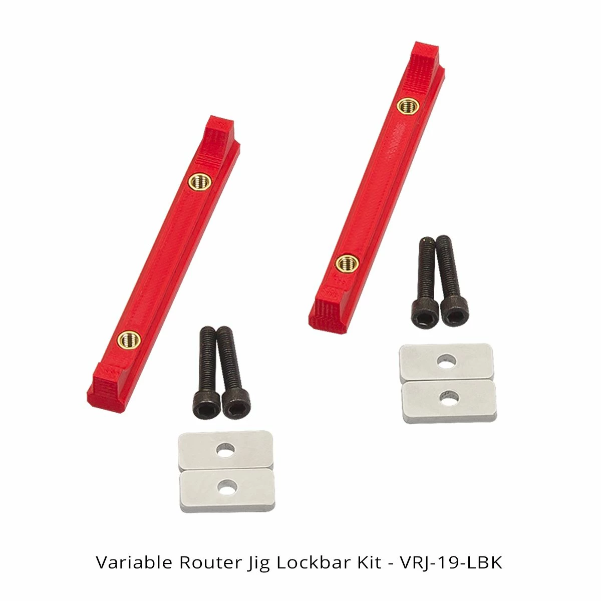 Built for a Lifetime of Projects. The tracks for the Variable Router Jig are clear anodized to create a tough, abrasion-resistant surface. The lockbars are a special polycarbonate that slides easily and locks solidly in the track. We offer two complete kits, one with four 18″ tracks and one with two 18″ tracks and two 32″ tracks. Both come with all the lockbars and hold-down brackets you need. If you buy the smaller kit and later need more capacity, we sell the 32″ tracks separately. We also have the hold-down brackets and lockbars available.