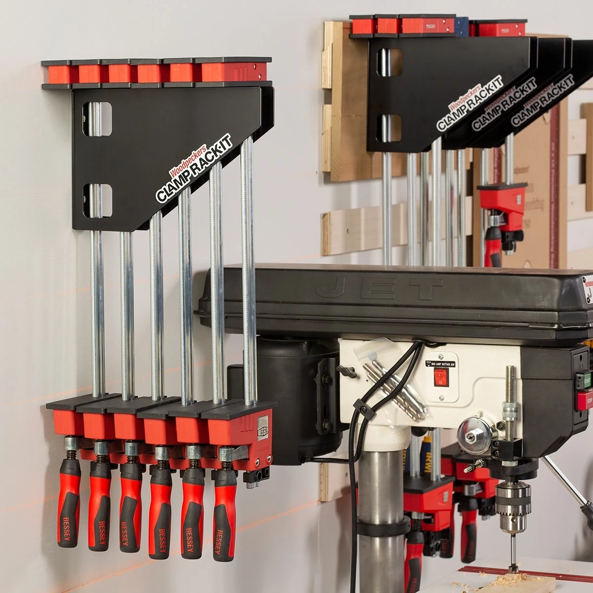 Clamp Rack-It™ lets you customize your clamp storage. Put one up in different locations in your shop so the clamps you want are where you want them. Or, take advantage of bare spots on your wall and fill them up with clamps. Keep them in easy reach from your various work areas.
