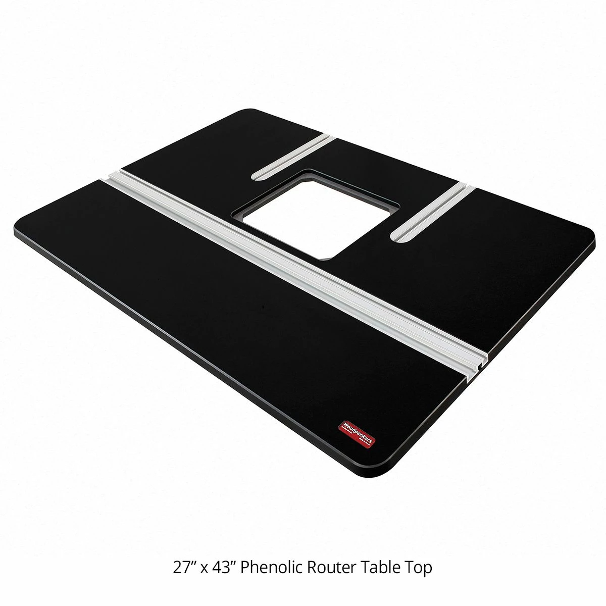 The Super Fence mounts directly to our extra large 27 x 43 x 3/4 thick commercial grade phenolic router table. The embedded T-tracks allow for simple adjustability. No edge clamping necessary. The table also features an embedded combination miter and T-track. The 3/8 x 3/4 miter channel is compatible with miter gauges, cross cut tools, feather boards and coping sleds. The 9 1/4 ” x 11 3/4 ” x 3/8″ table opening fits most standard router plates and lifts.