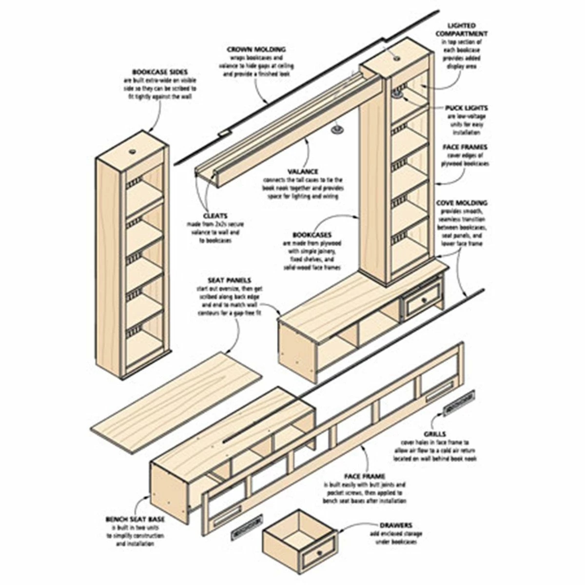 Step-by-step instructions, exploded views, materials list, and more—these plans have everything you need to build your own Built-In Book Nook.