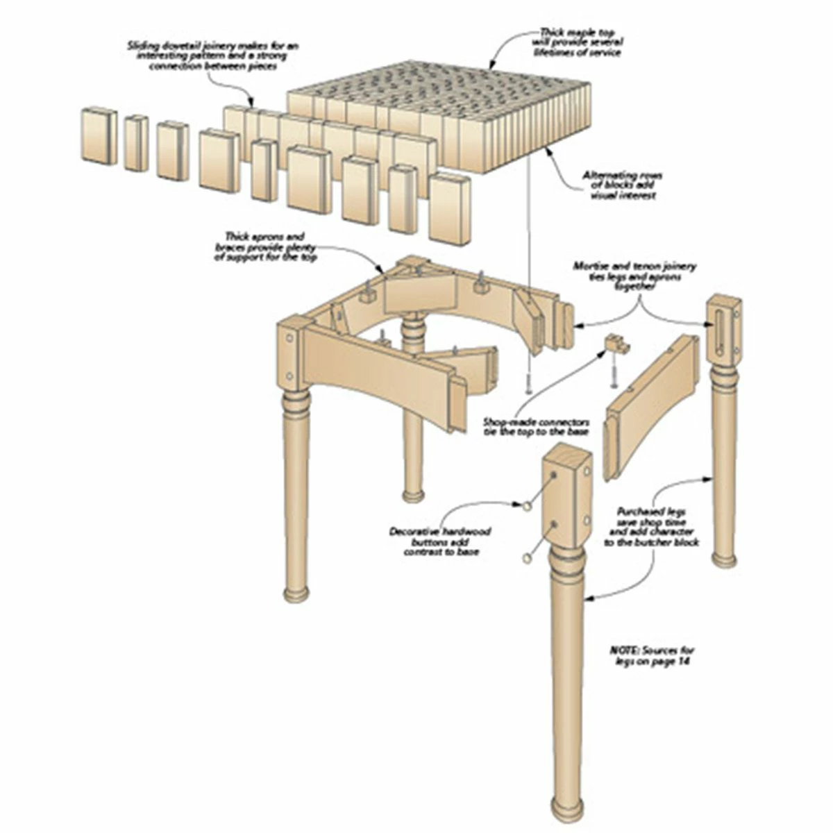 Step-by-step instructions, exploded views, materials list, and more—these plans have everything needed to build your own heirloom-style Butcher Block.