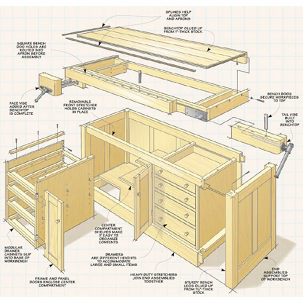 Step-by-step instructions, exploded views, materials list, and more—these plans have everything you need to build your own Cabinet-Base Workbench.