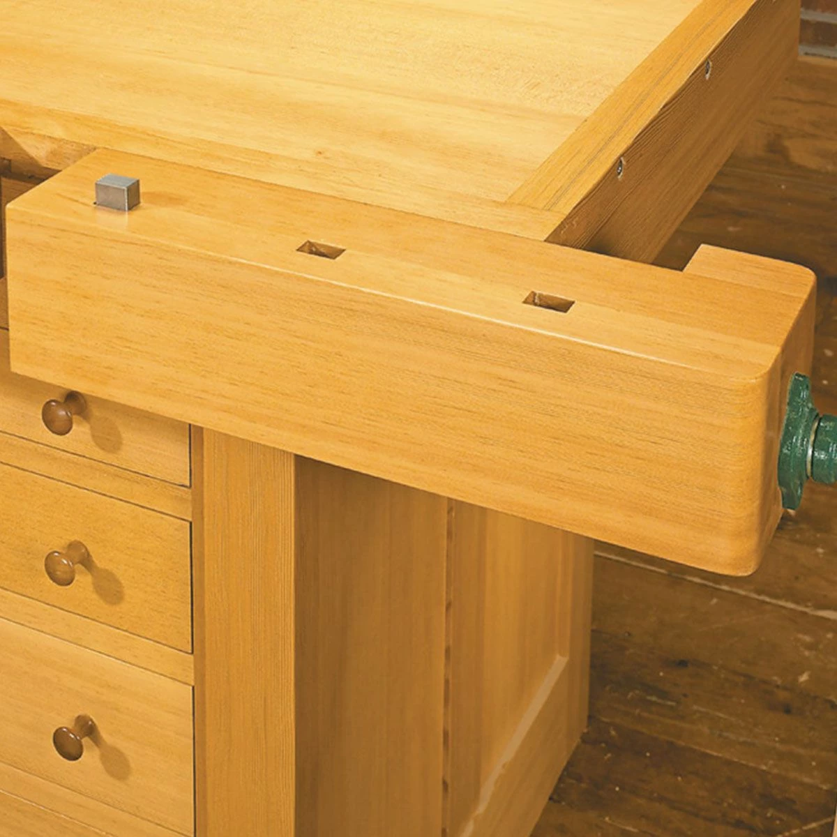 This workbench has it all — classic looks, plenty of storage, plus a top and vises able to handle the most demanding tasks.