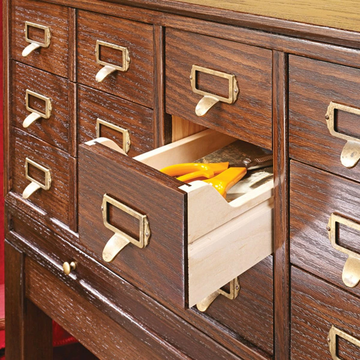 Step-by-step instructions, exploded views, materials list, and more—these plans have everything you need to build your own Card Catalog Cabinet.