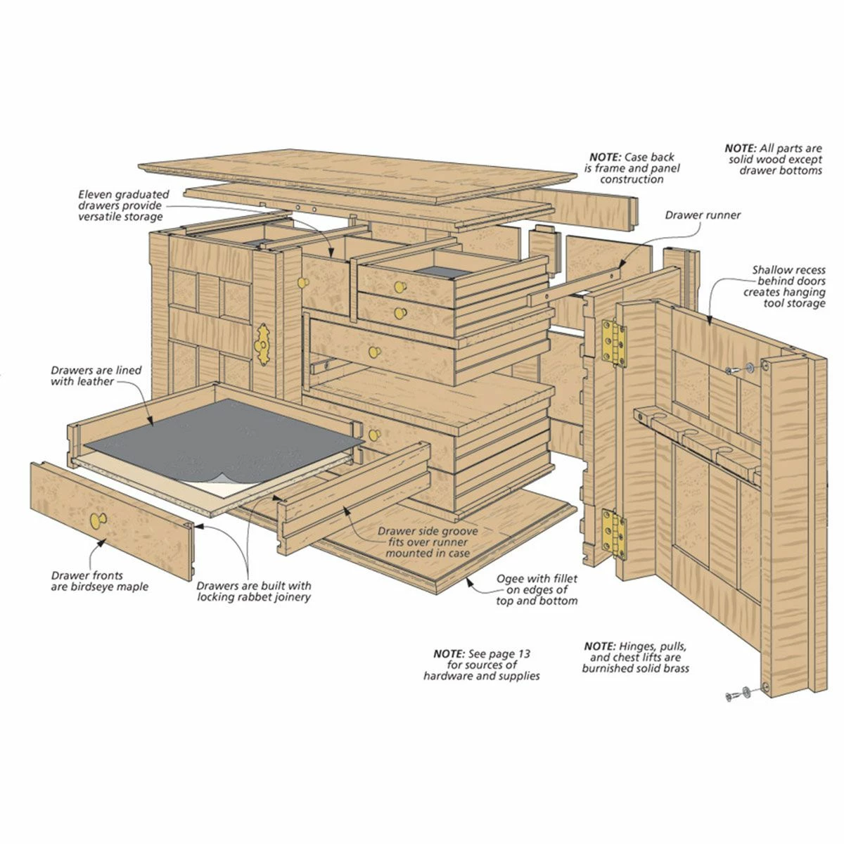 Step-by-step instructions, exploded views, materials list, and more—these plans have everything needed to build your own beautiful Craftsman’s Tool Chest.