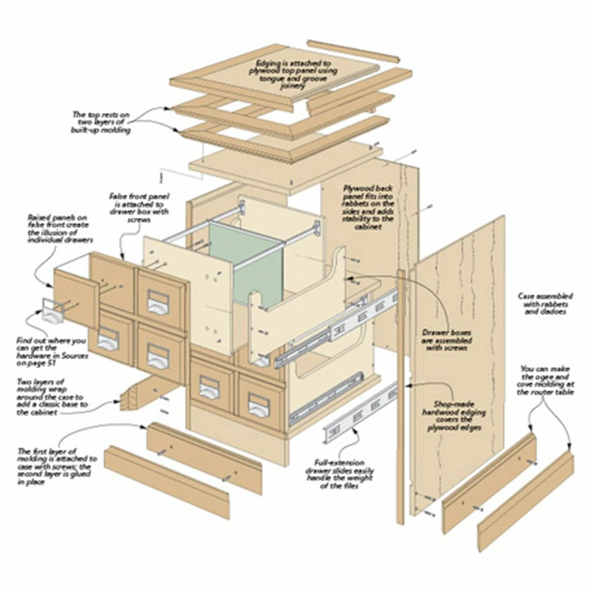 Step-by-step instructions, exploded views, materials list, and more—these plans have everything needed to build your own versatile File Storage Cabinet.