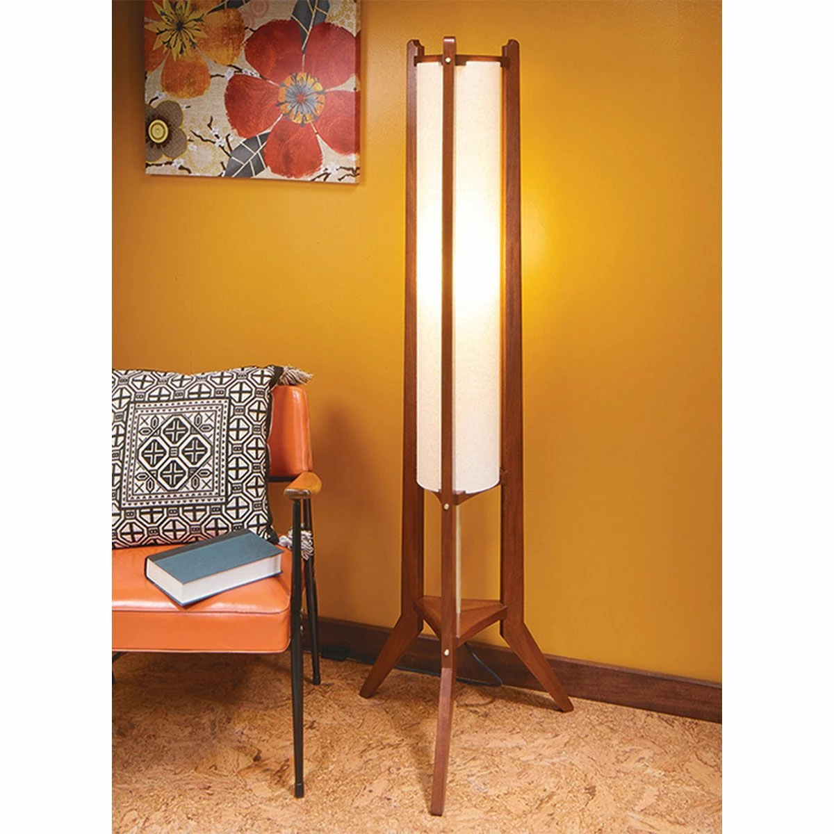 This mid-century style floor lamp looks simple, but has enough woodworking to provide you with a challenge.