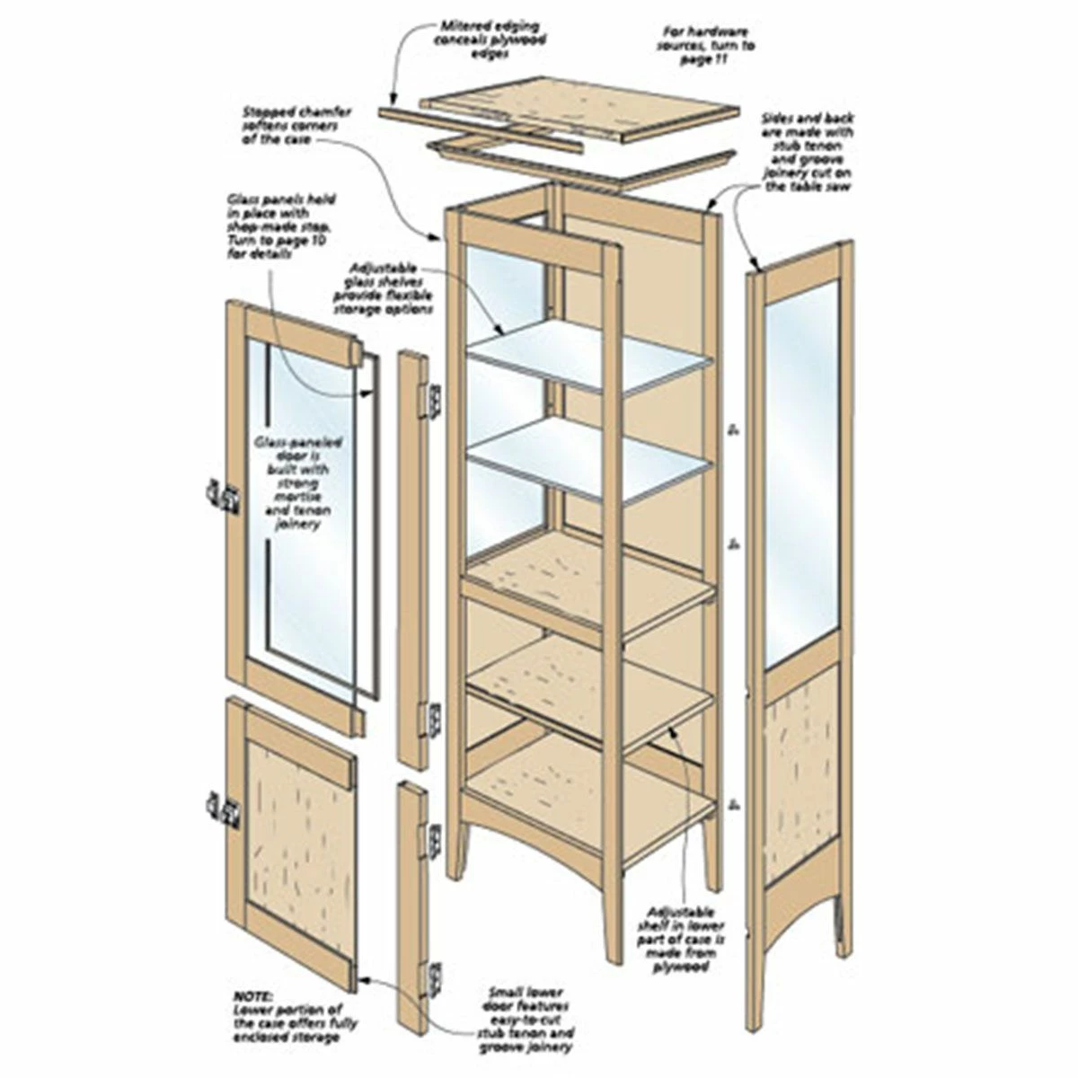 Step-by-step instructions, exploded views, materials list, and more—these plans have everything you need to build your own Glass-Panel Display Cabinet.