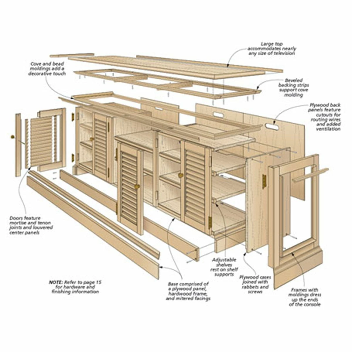 Step-by-step instructions, exploded views, materials list, and more—these plans have everything you need to build your own Louvered-Door TV Console.
