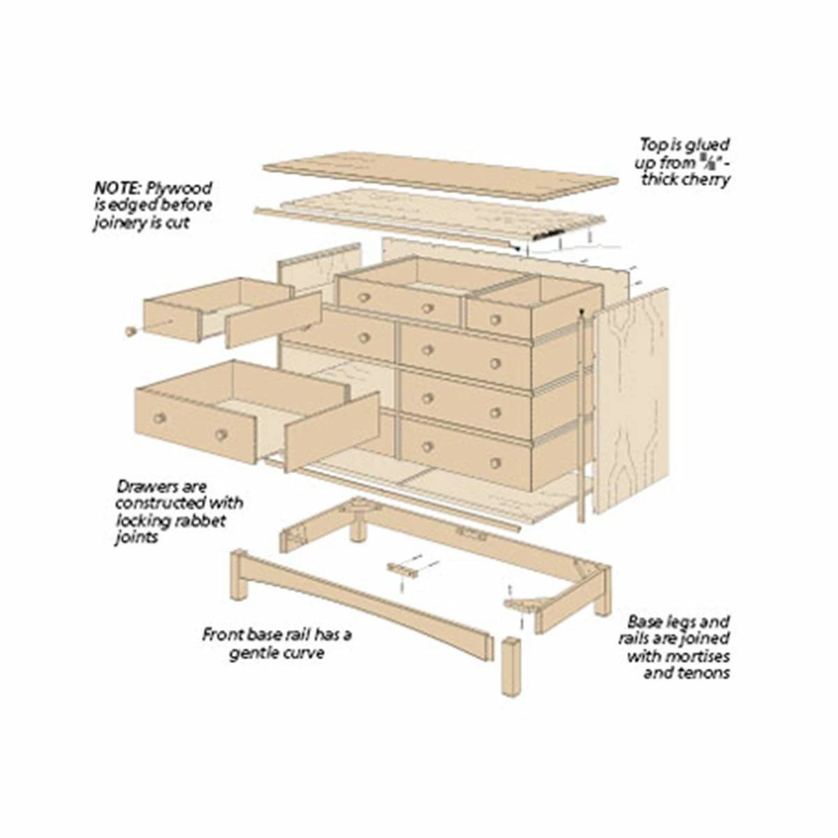 Step-by-step instructions, exploded views, materials list, and more—these plans have everything you need to build your own classic Nine-Drawer Dresser.