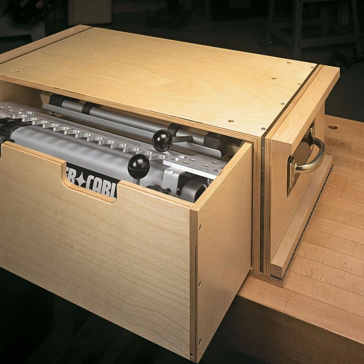 Accuracy, convenience, and storage. You get it all with this simple workcenter for your dovetail jig.
