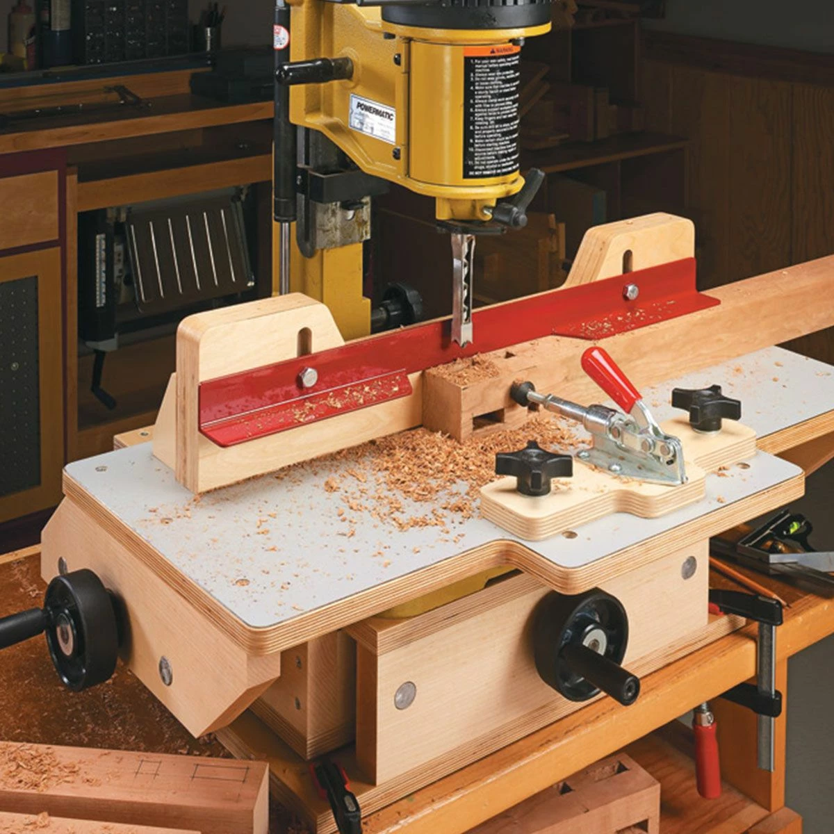 Accurate, repeatable mortises are guaranteed with this sliding table.