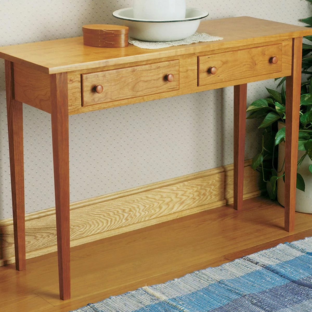 A solid cherry hall table inspired by the timeless quality and clean, uncomplicated lines of Shaker design.