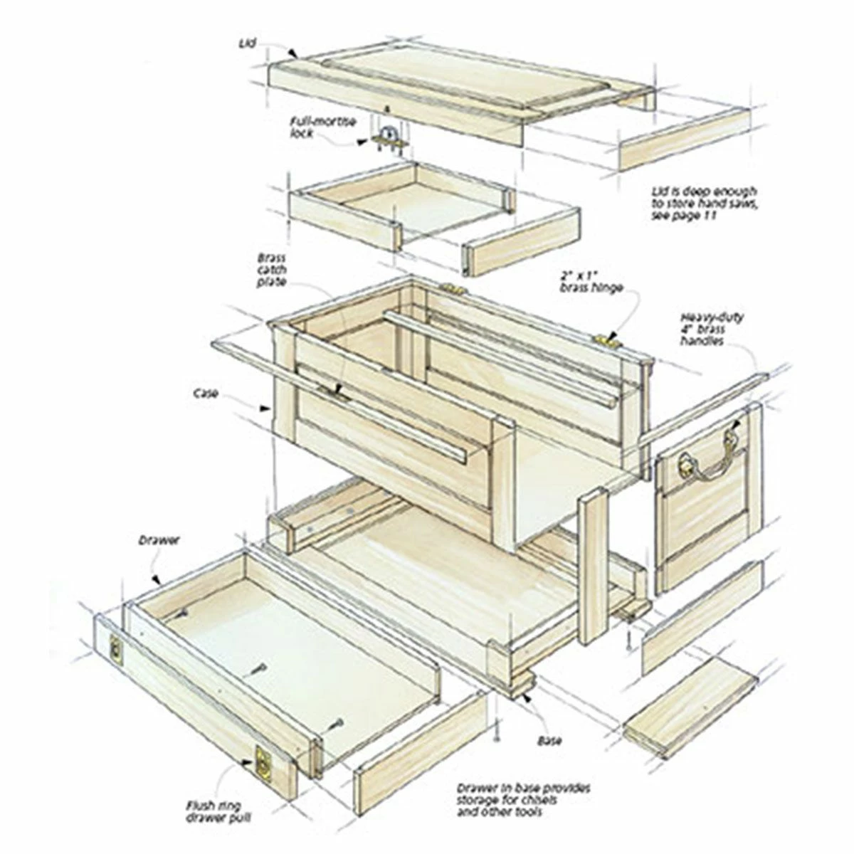 Step-by-step instructions, exploded views, materials list, and more—these plans have everything you need to build your own traditional Tool Chest.