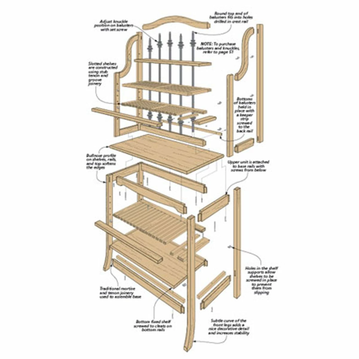 Step-by-step instructions, exploded views, materials list, and more—these plans have everything you need to build your own Traditional Baker’s Rack.