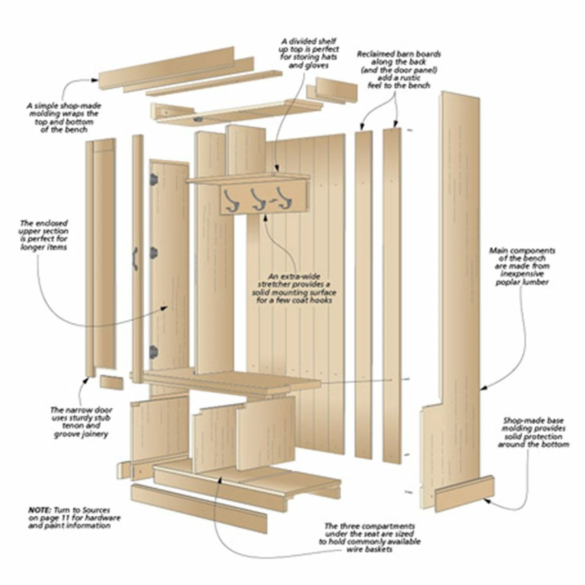 Step-by-step instructions, exploded views, materials list, and more—these plans have everything you need to build your own Welcoming Hall Bench.
